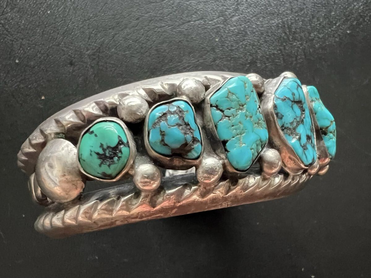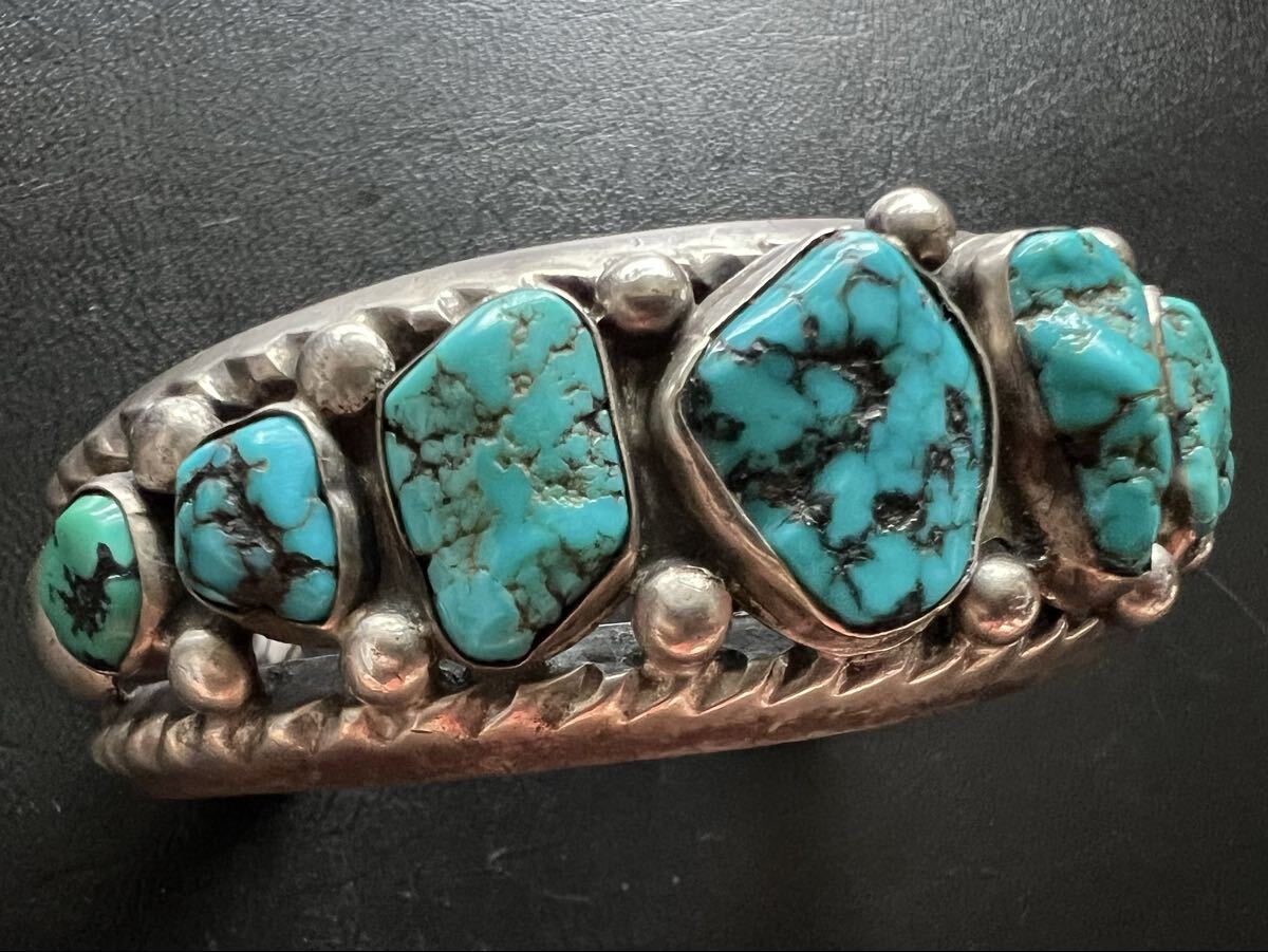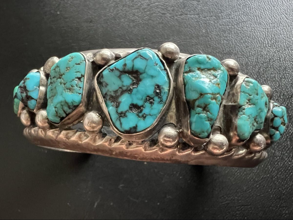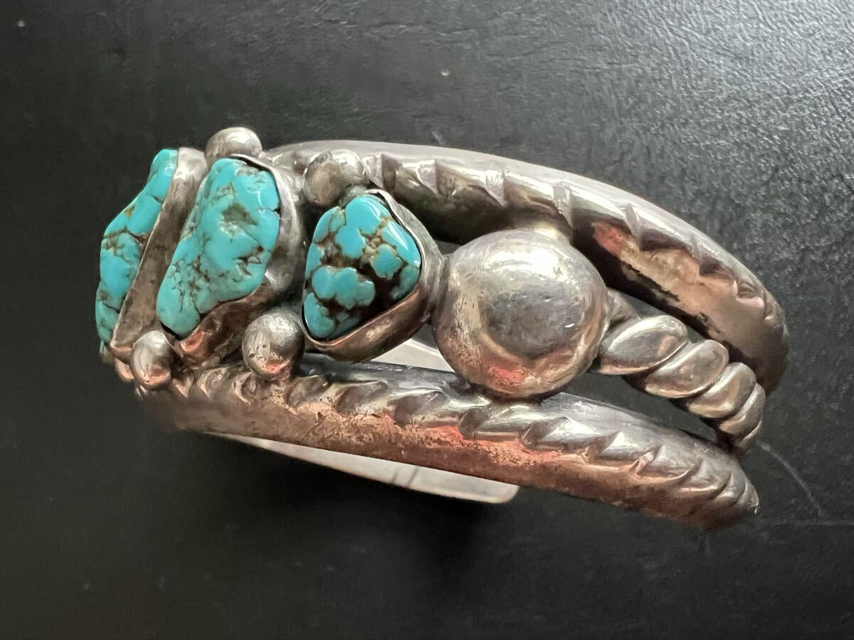 NAVAJO 【OLD PAWN】1950~60's GEM 7ターコイズ バングル Coin Silver インディアンジュエリー ズニ ホピ ナバホ