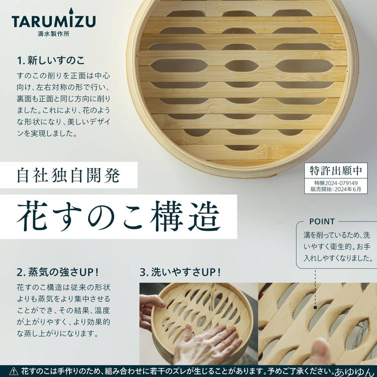 【花すのこ構造】この構造は、見た目にも美しいデザインでありながら、機能性にも優れています。蒸気をより効率的に集中させることができ、従来の形状よりも温度が上がりやすく、効率的な蒸し上がりになります。また、溝が斜めに削られているため、洗浄が容易で衛生的な状態を保ちやすくなっています。★特許出願中(特願2024-079149)