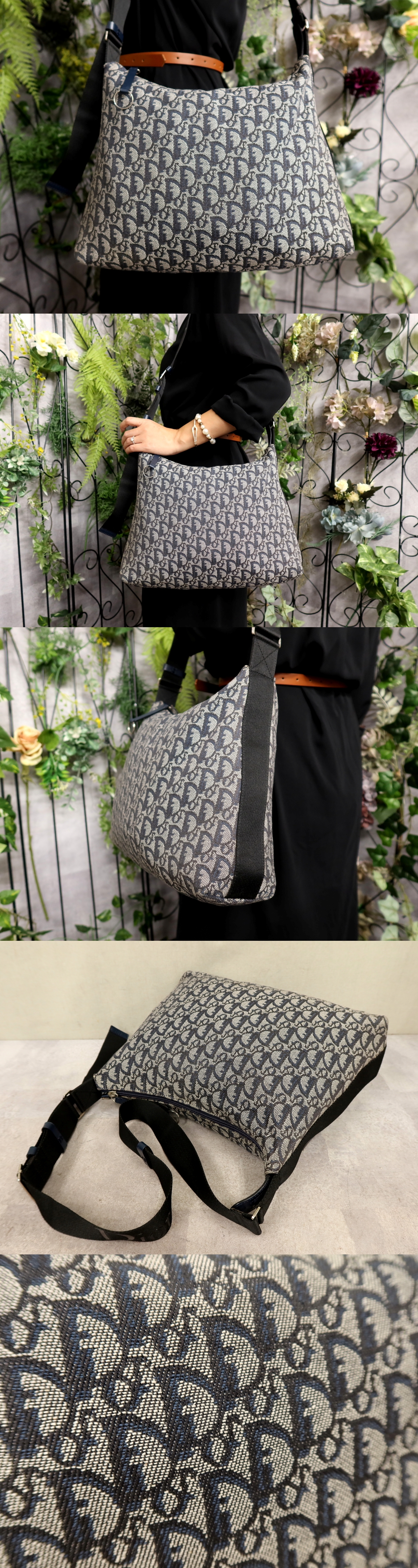 ●超美品●クリスチャン・ディオール●トロッター●キャンバス カーフ レザー 本革●ショルダー バッグ●ネイビー 黒●A4 収納●Js60945