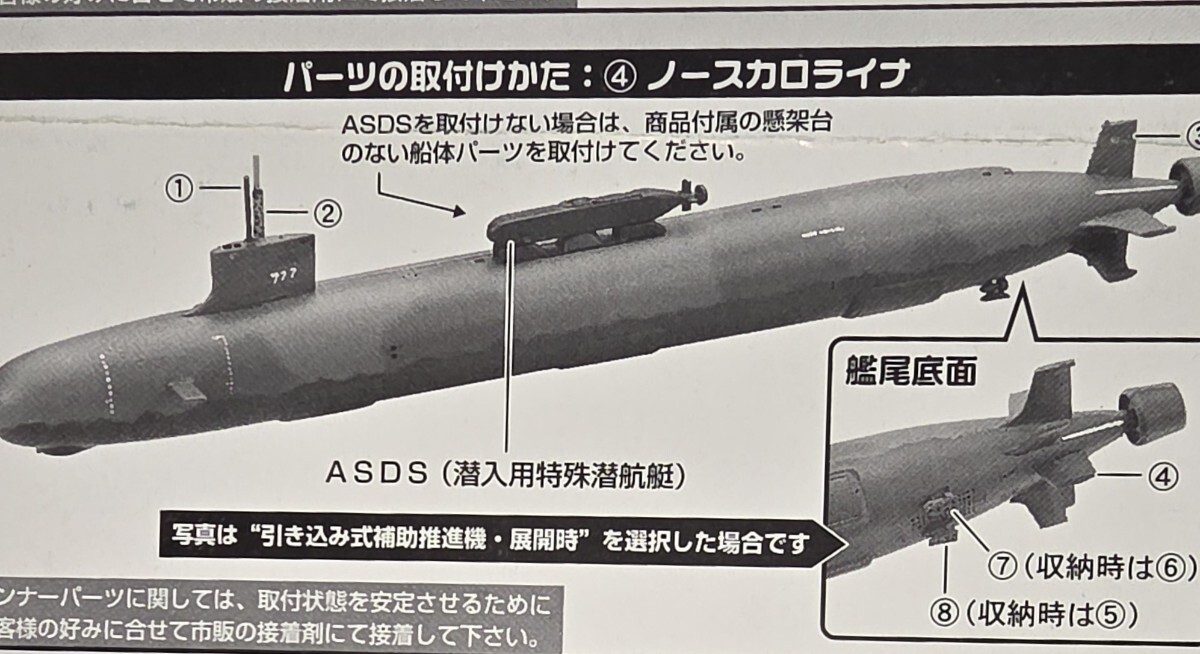 船体上には潜入用潜航艇(ASDS)を搭載した状態にも変更可能です
