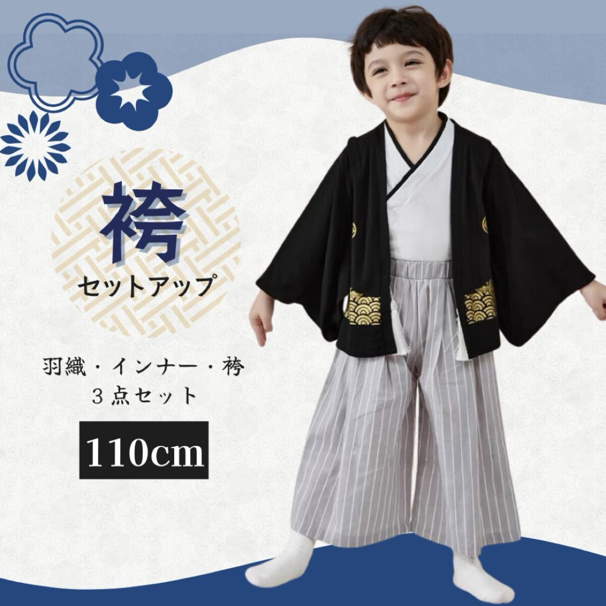 子供 卒園 袴 110 男の子 黒 セット キッズ 5歳 撮影 前撮り 七五三