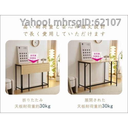 • 【安心の頑丈設計】高い耐荷重と安心の頑丈設計で長く愛用していただけます。折りたたみ天板耐荷重約30kg、 展開された天板耐荷重約30kg