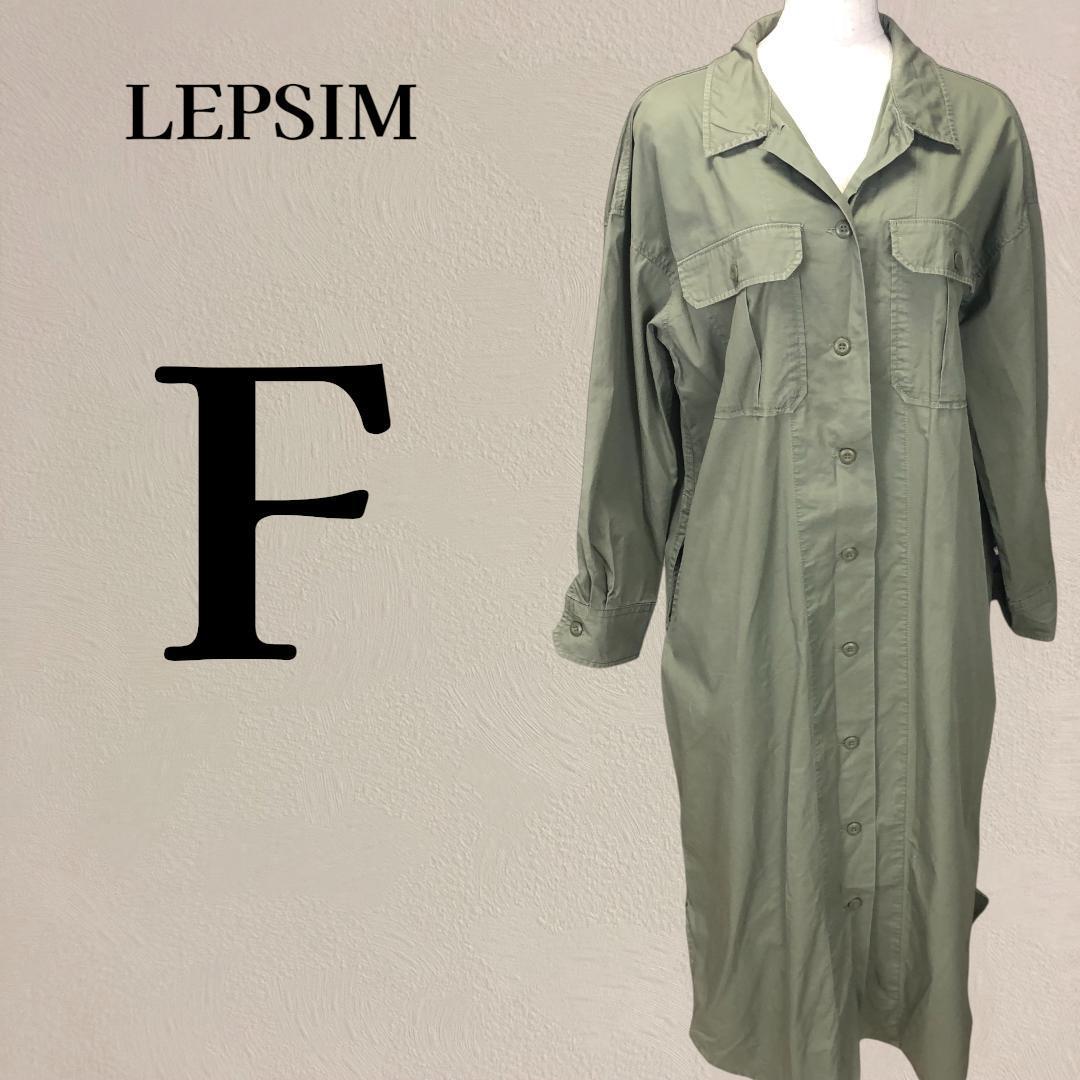 【美品】レプシィム LEPSIM ゆったり シャツワンピ F オリーブグリーン