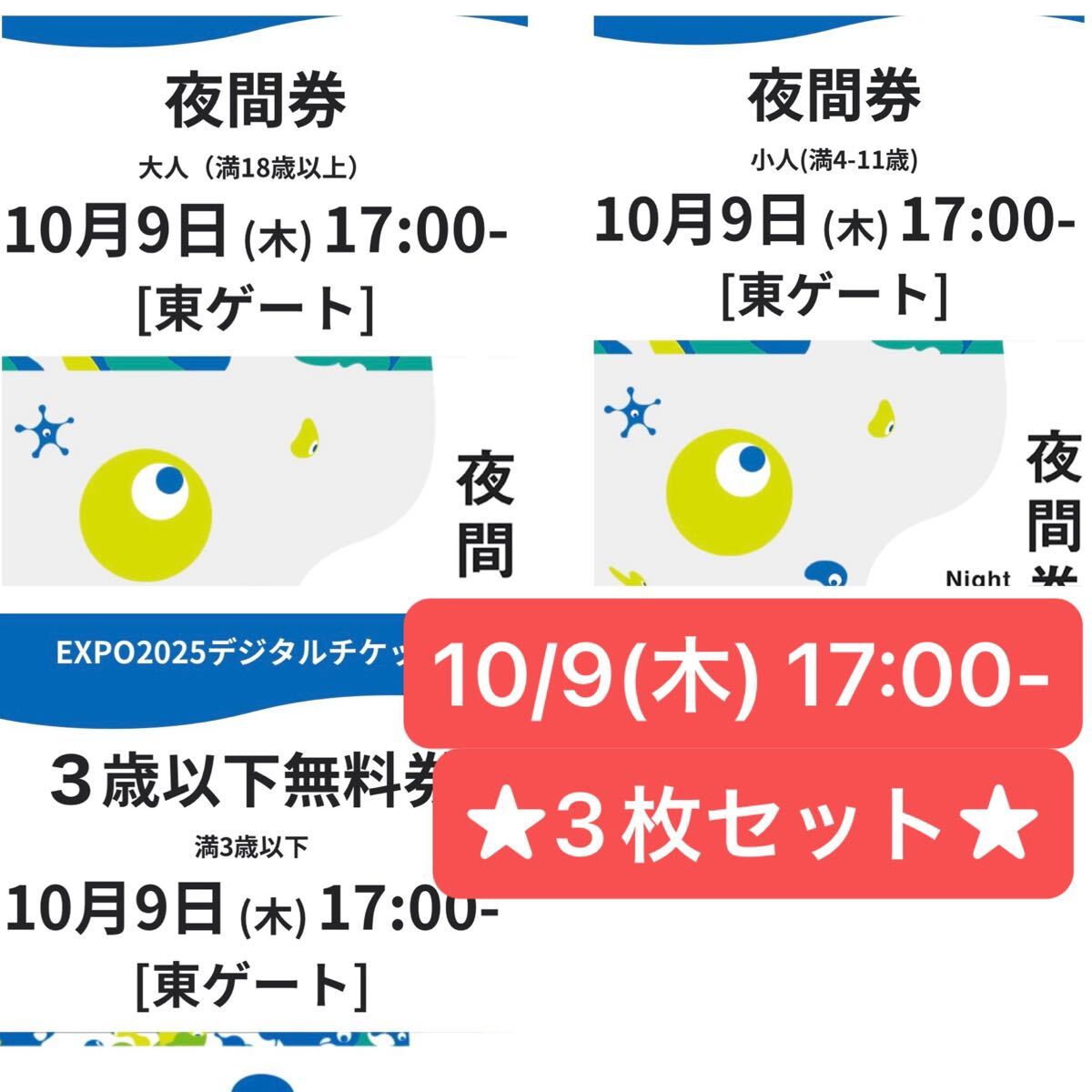 【対象】大人、小人、3歳以下の3枚セット