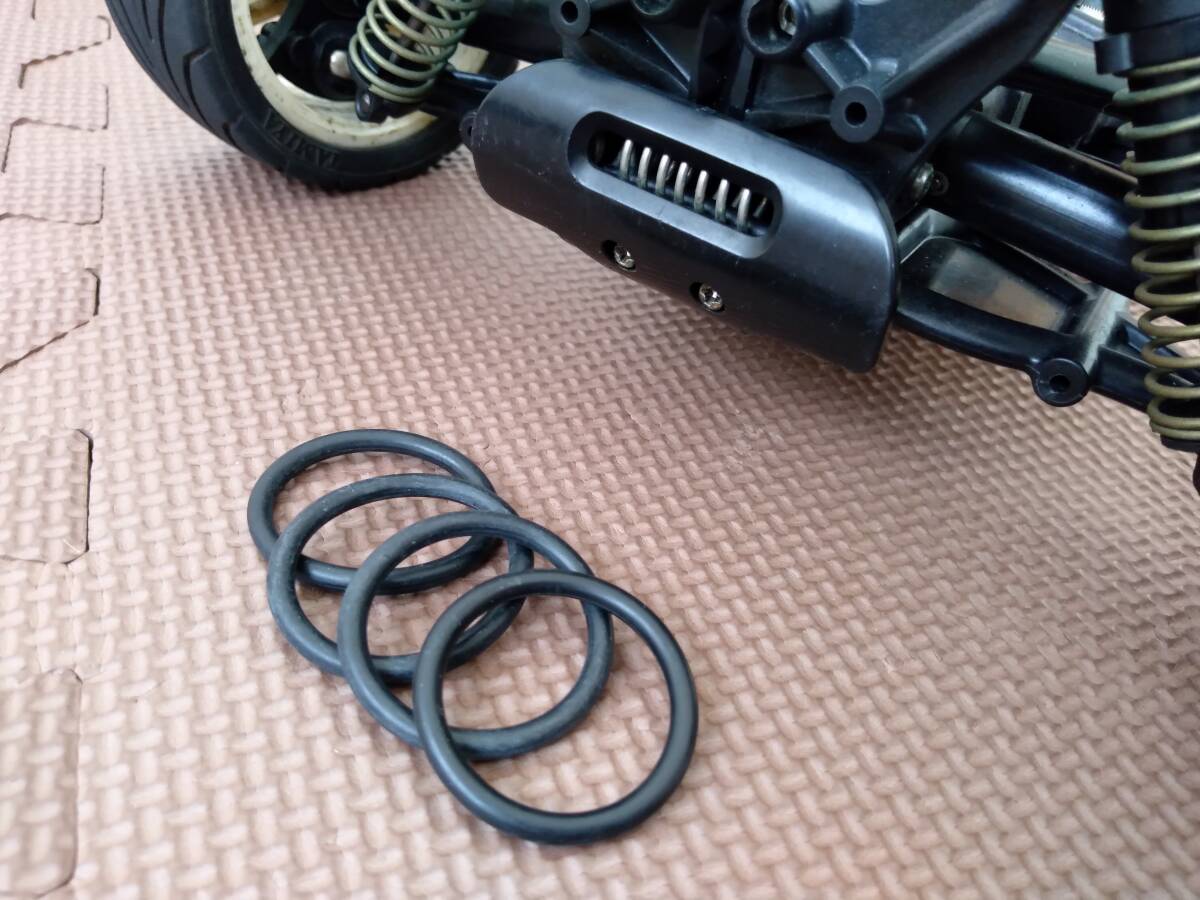 フロントバンパーの奥にあるサスアーム破損防止用のOリングの予備をオマケで入れておきます。