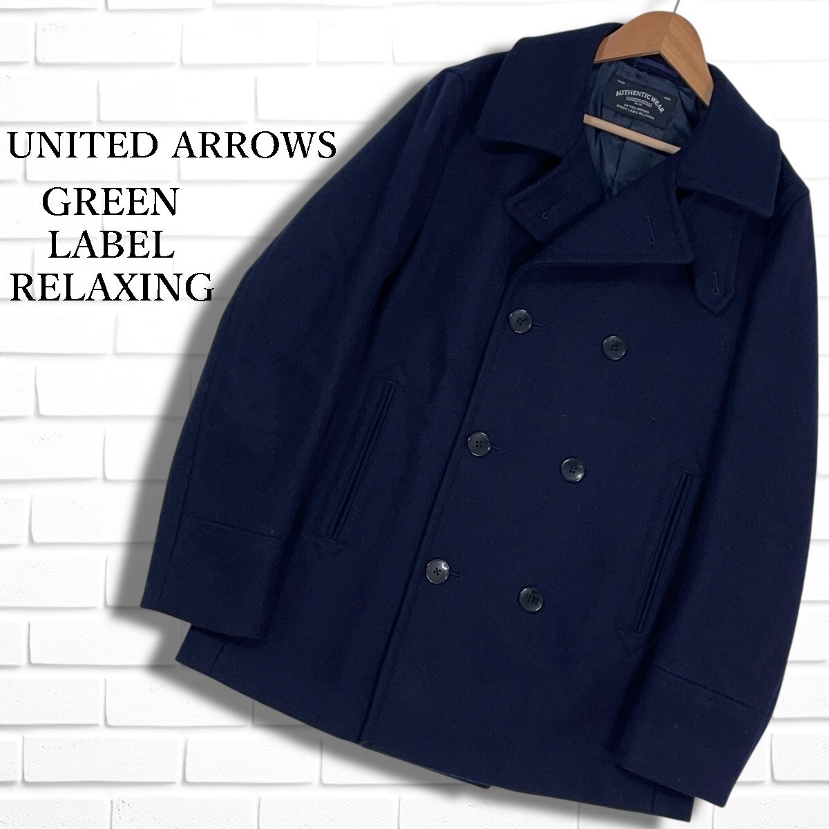 ◆美品◆ UNITED ARROWS GREEN LABEL RELAXING ユナイテッドアローズ グリーンレーベルリラクシング ウール Pコート 紺 メンズ M 0275J◇