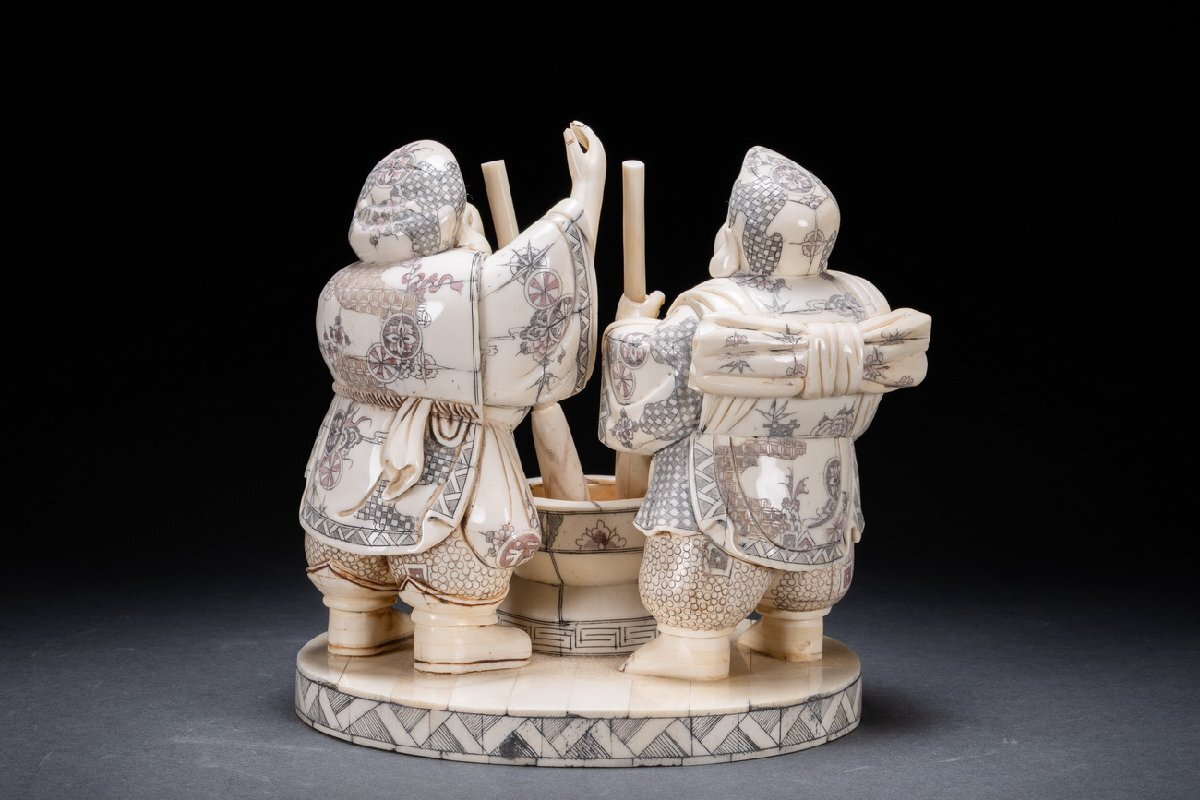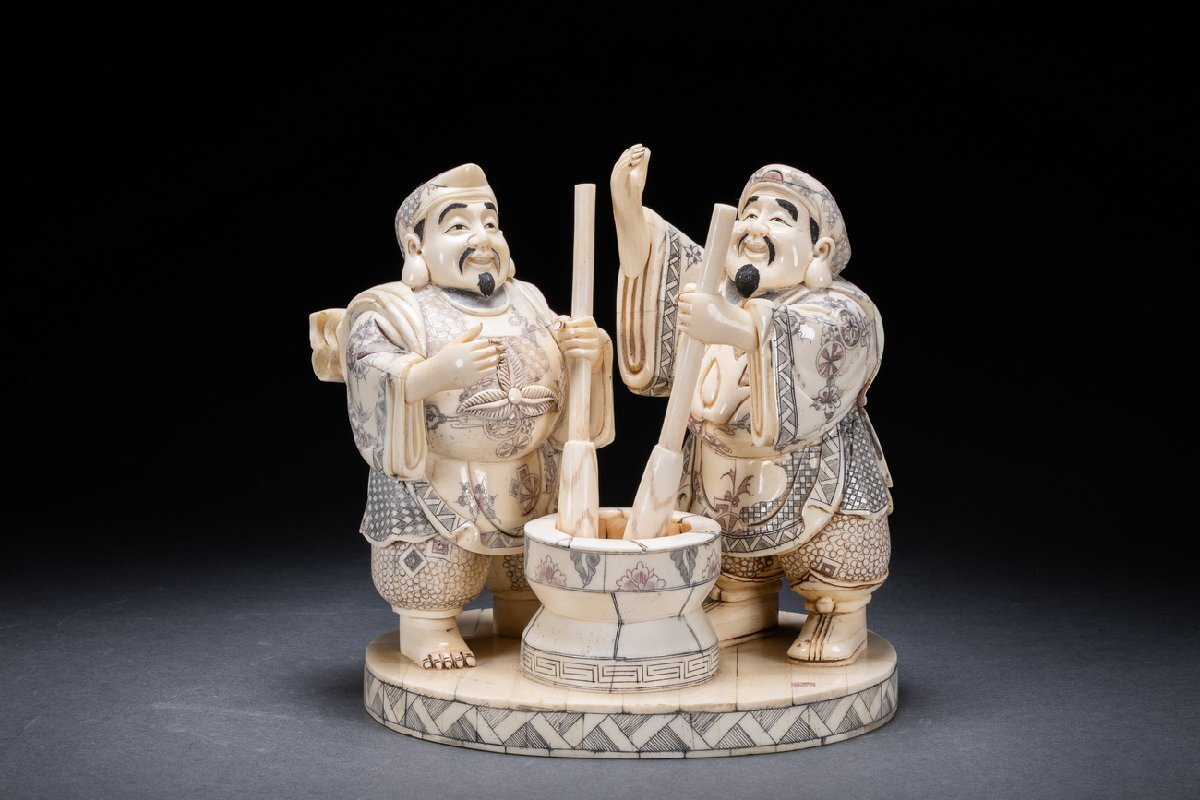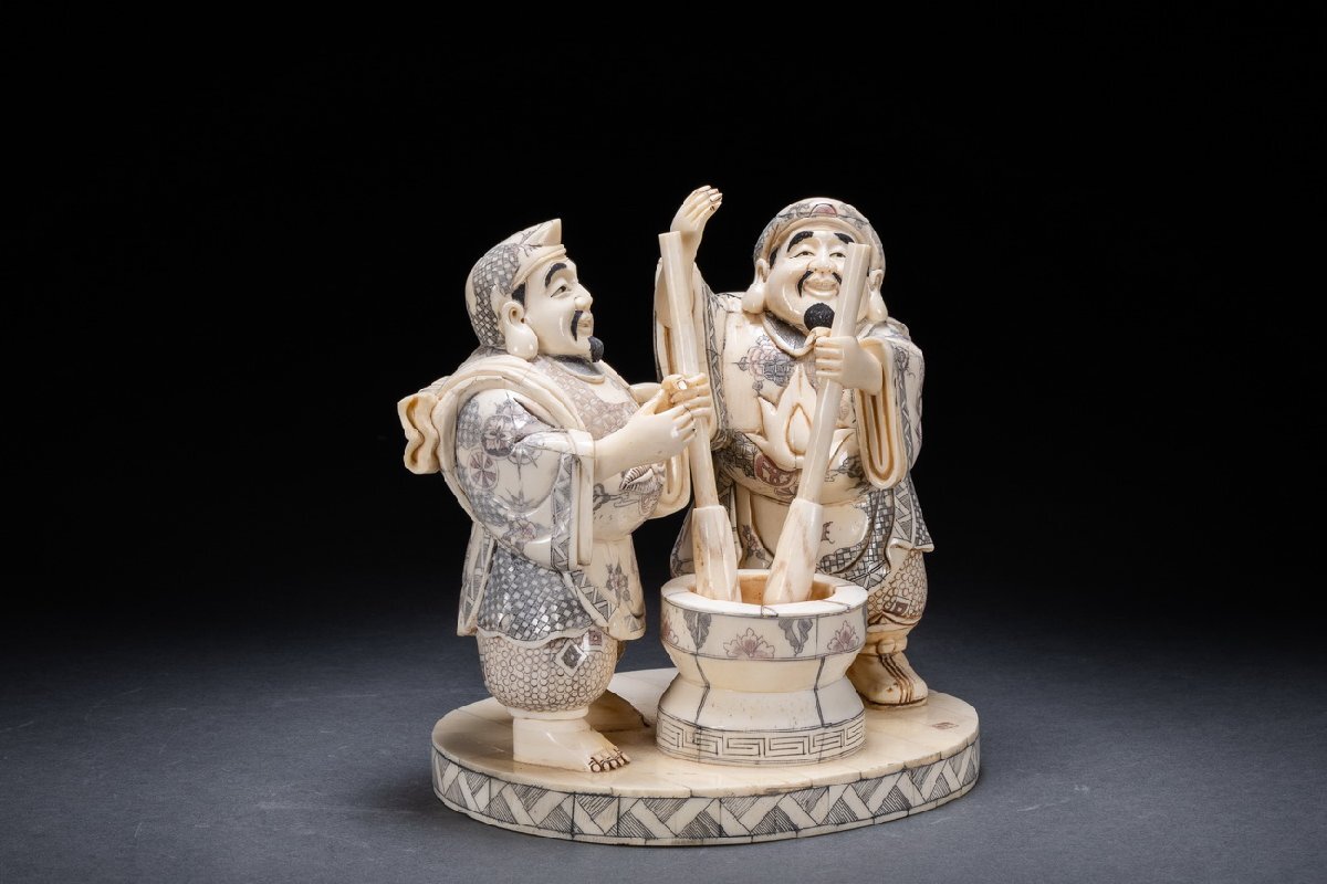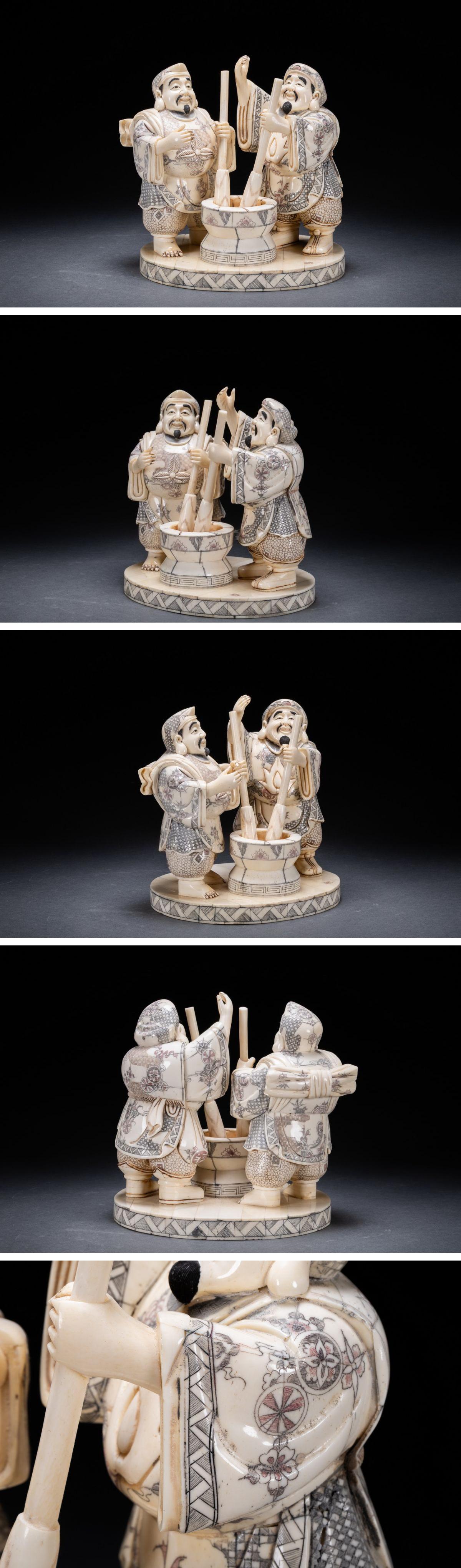 【雲錦】某有名オークション購入 時代物 特種白材 大黒天・恵比寿造像 古置物 古擺件 古美術 時代コレクションWK9-201L