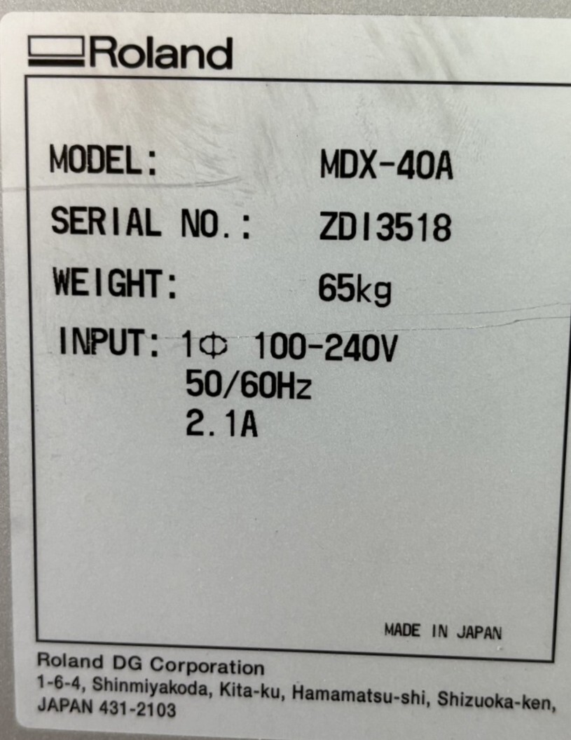 福岡発 ローランド 切削RPマシン MODELA MDX-40A 動作範囲:305 (X) 305 (Y) 105 (Z) mm 重量:65㎏
