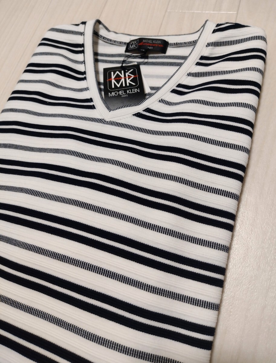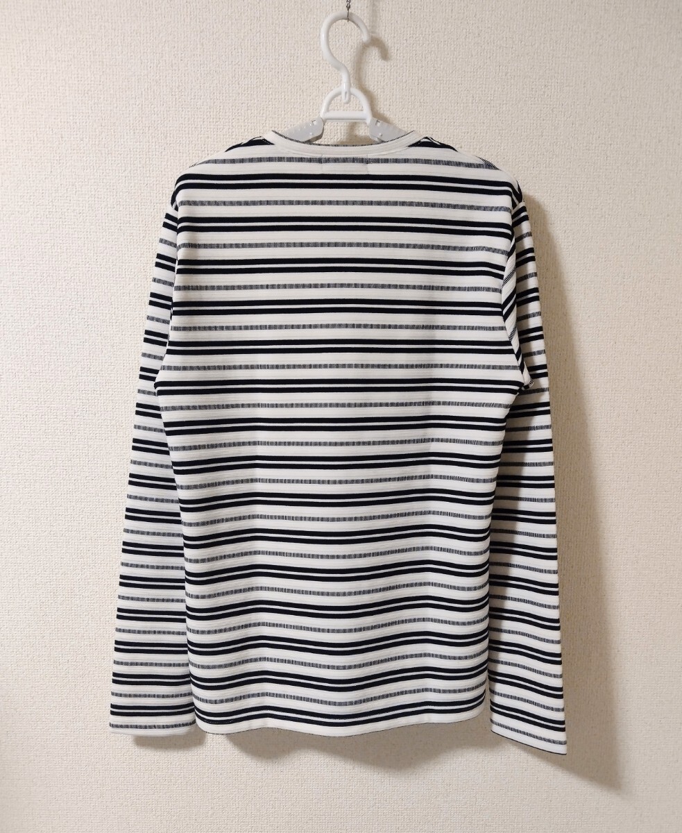 凹凸を華麗にボーダーデザインに落とし込んだ上品な一枚。ハリのある生地感と、秋頃から重宝する適度な薄さは実用性があります。清潔感のある大人コーディネートの主役として、これからの季節に確実に重宝するでしょう。