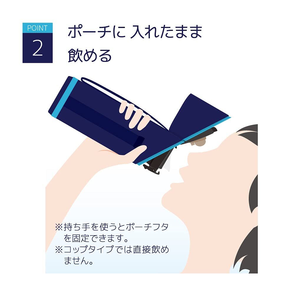 ●ストラップ付きのマイボトルポーチ ●持ち運びしやすい持ち手 & ショルダーストラップ付き (2way仕様) ●ボトルをポーチに入れたまま飲める ●持ち手を使うとポーチフタを固定できる (※コップタイプでは直接飲めません) ●保温力がUPするアイソテック断熱構造 ●ポーチと丈夫なEVA(エチレン酢酸ビニル)底で、ボトルの傷付き防止