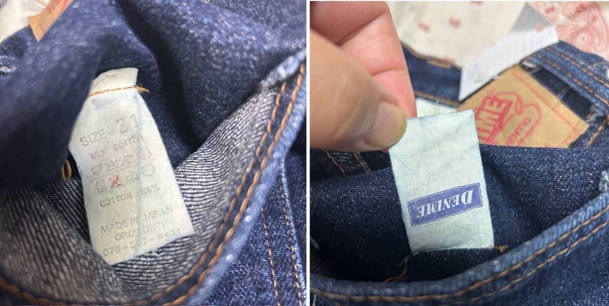 ●商品説明・・・90年代頃~00年代初め頃のオリゾンティ期の旧ドゥニームのミミ付きセルヴィッジデニムパンツです。ヴィンテージのリーバイスの60sの501ビッグEの最終モデルか501 66モデル(66前期)のレプリカ・復刻モデルのような感じです。501XXよりもややスリムなストレートシルエット感で、仕様としてはミミ付きセルヴィッジデニム・黒カン・紙パッチ・ボタンフライ・ポケット裏シングルなどです。まだアタリ・色落ちなどあまりでていない、濃紺に近いしっかり濃いインディゴ色で、これから履き込んでいただける一着です。日本製で素材はコットンで、しっかりしたオンスのデニム生地です。サイズ表記は31で、M程度のサイズ感かと思います。トップのボタンホールに解れがあったので、出品前にリペアしてあり問題無く使えるようになっています。