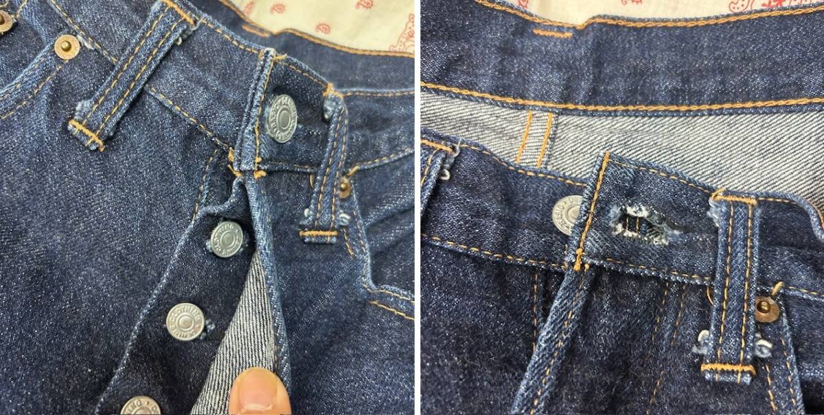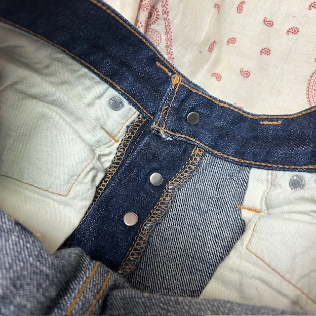 ●状態・・・USEDになりますが、丁寧に着られていた感じで、着用感もあまり見られず、ポケットに若干のステッチ飛びは見られますが、目立つ汚れやダメージなどは見られず、USEDを着られる方でしたら問題なく履いていただける、年代的にも美品な綺麗な状態だと思います。