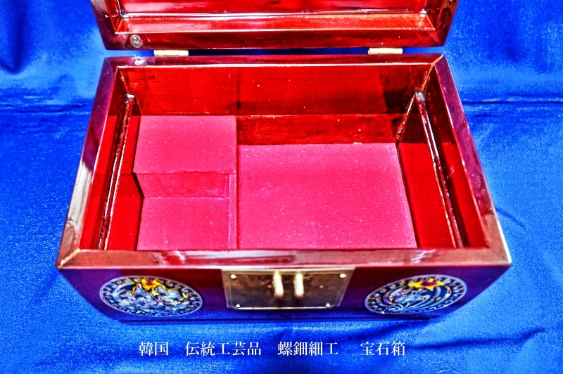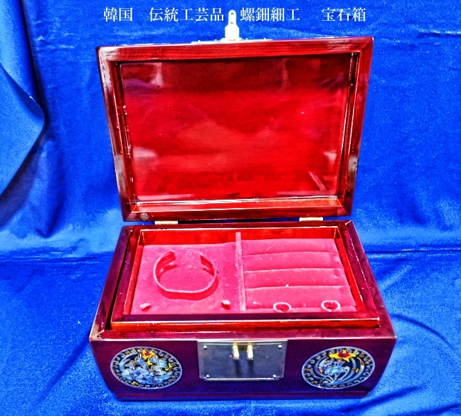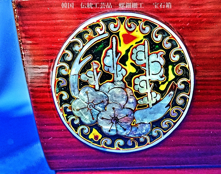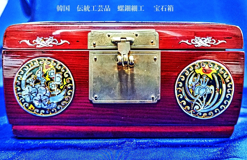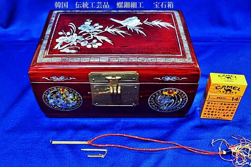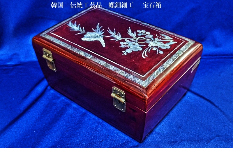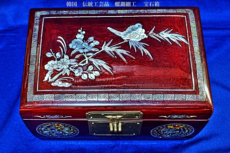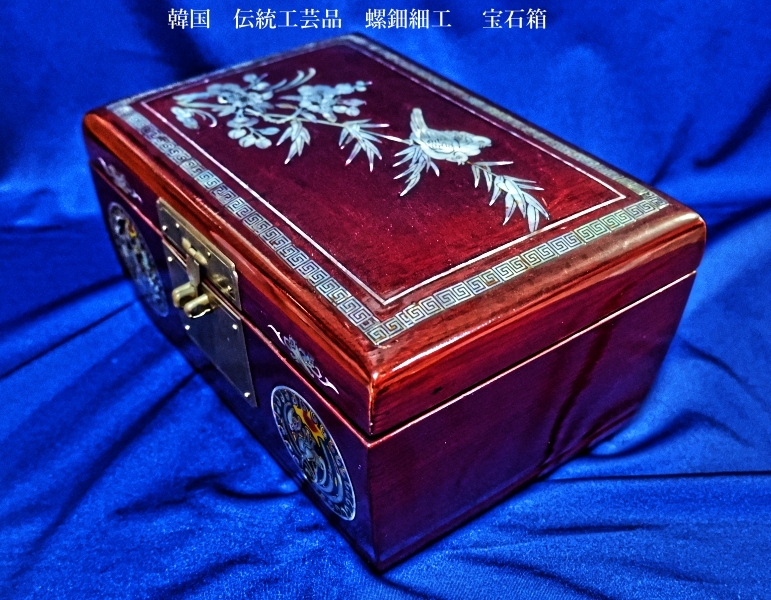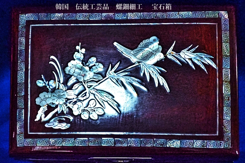 韓国 伝統工芸品 螺鈿細工 梅 笹、鶯 宝石箱 小物入れ アクセサリー入れ 漆塗り アンティーク品