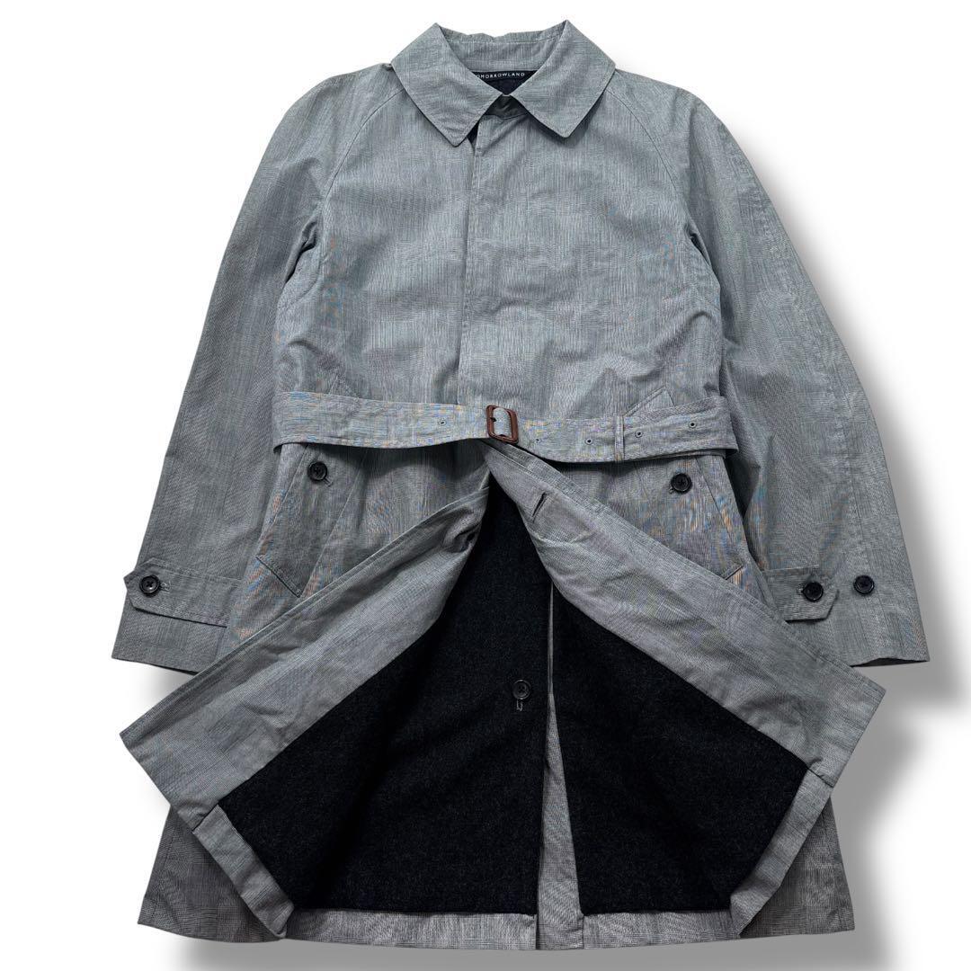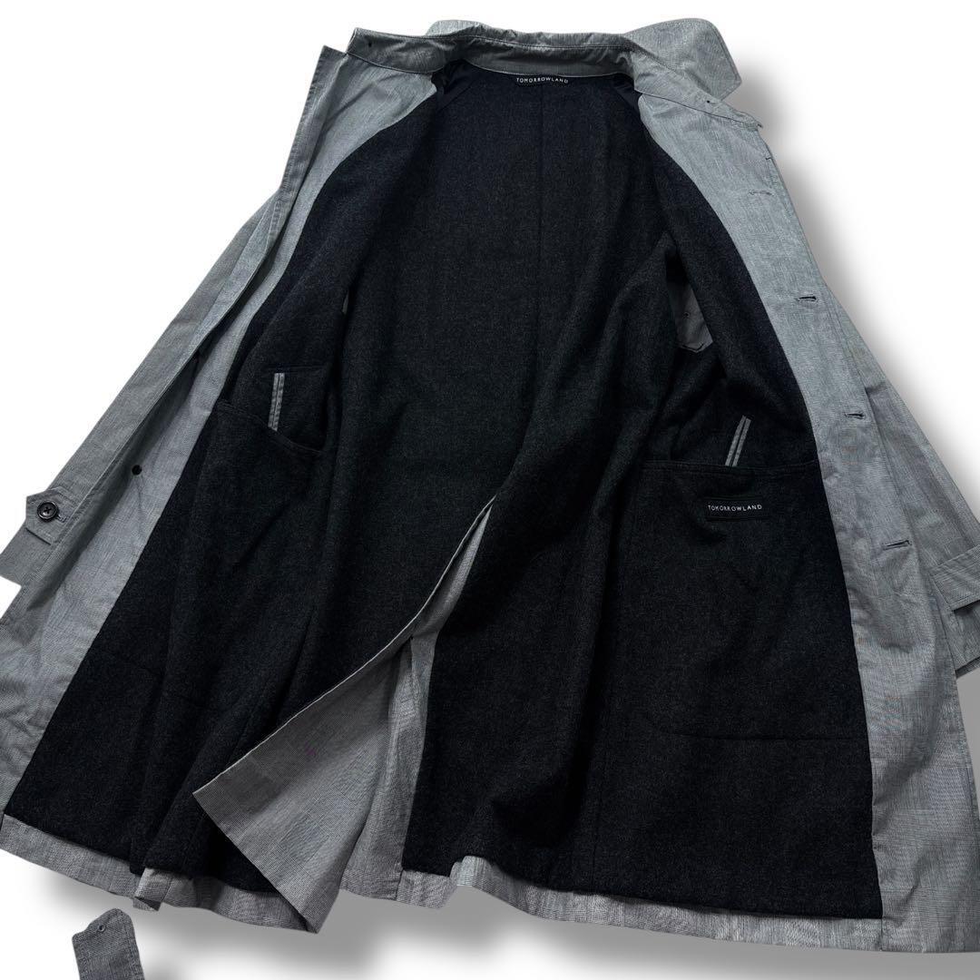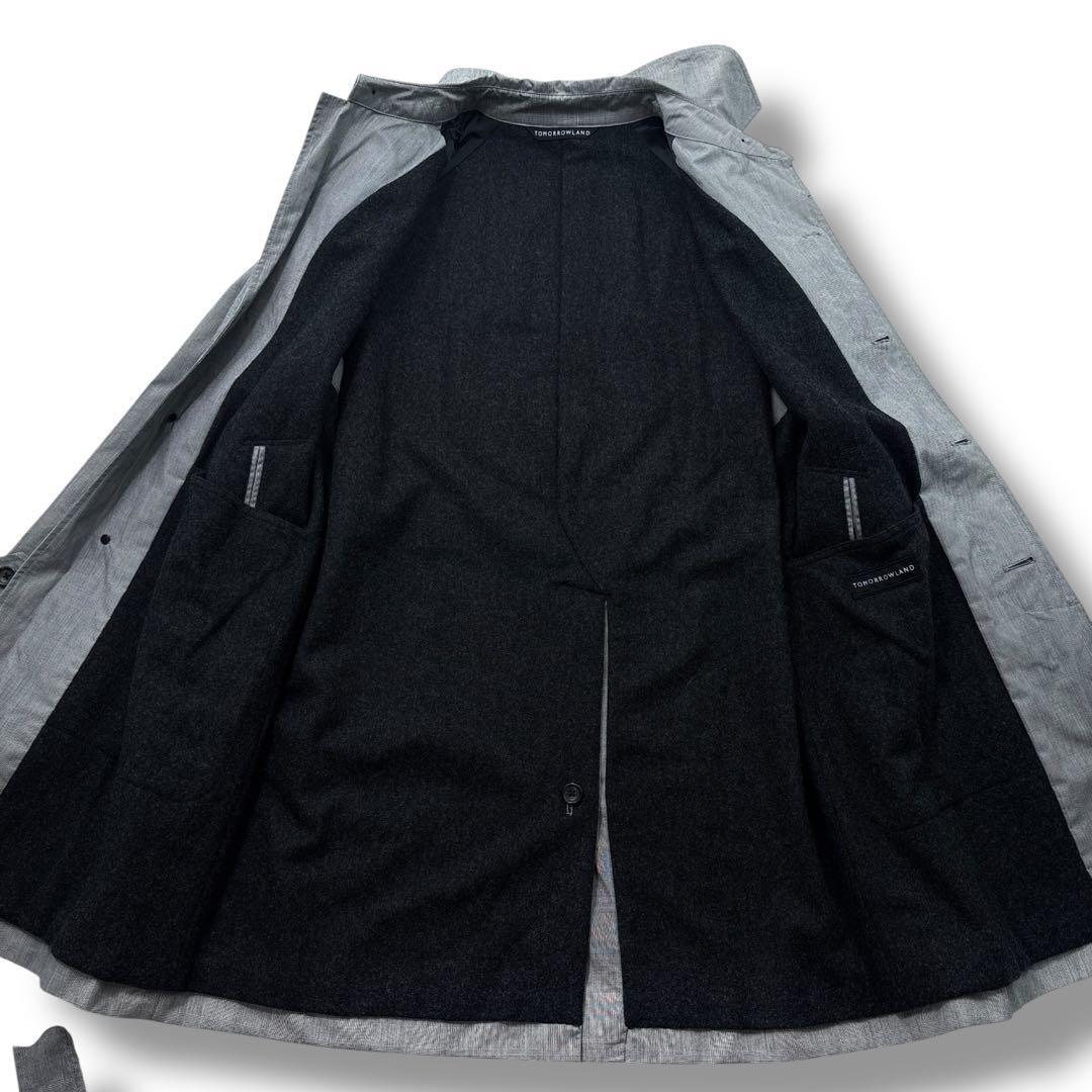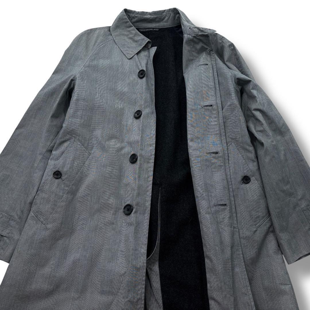 【美品】TOMORROWLAND トゥモローランド グレンチェック ステンカラー コート ウールライナー付き M グレー メンズ ビジネス 通勤通学