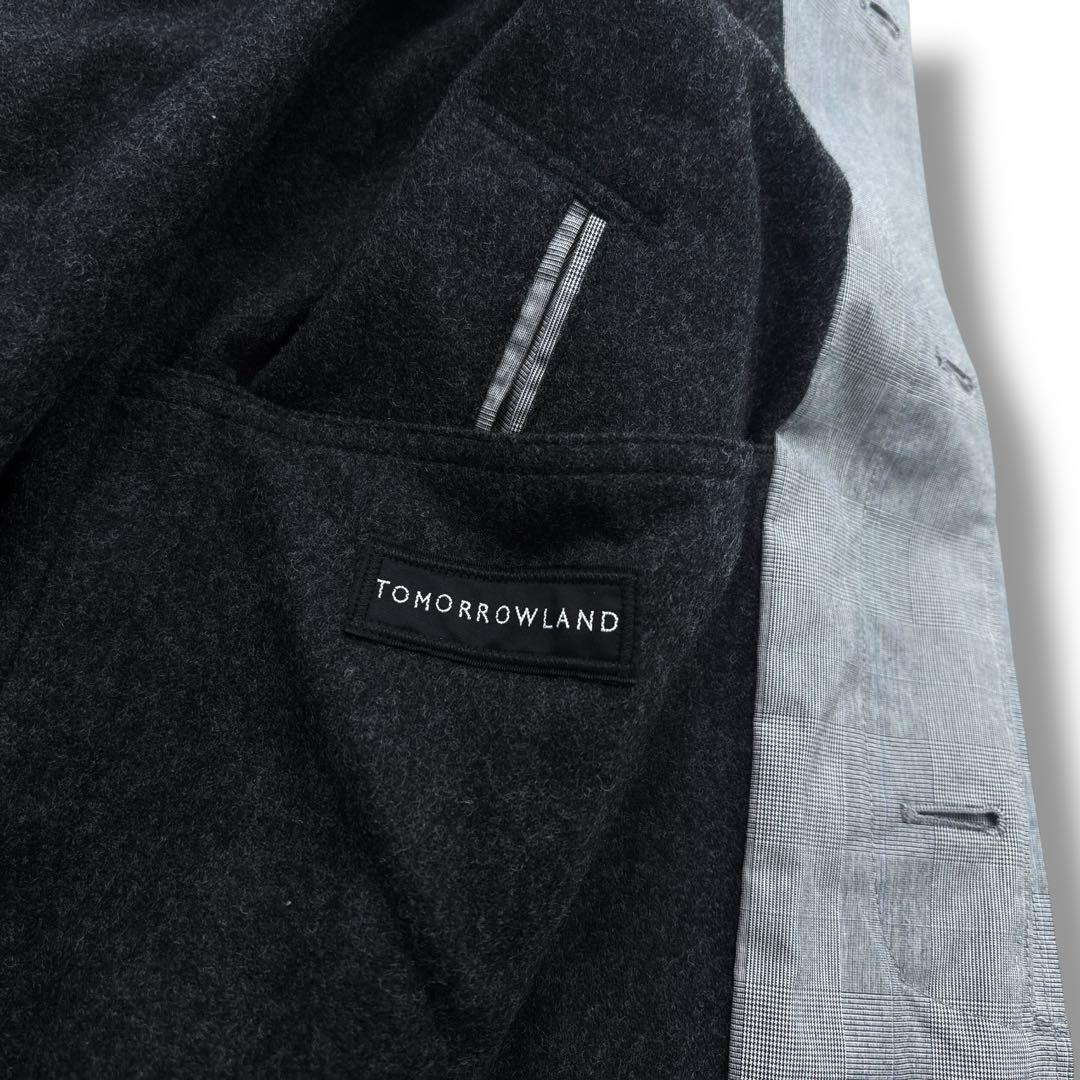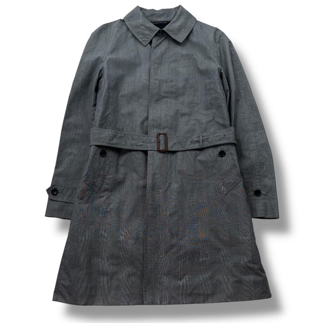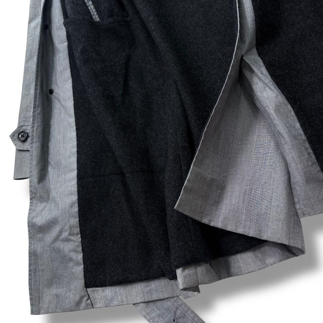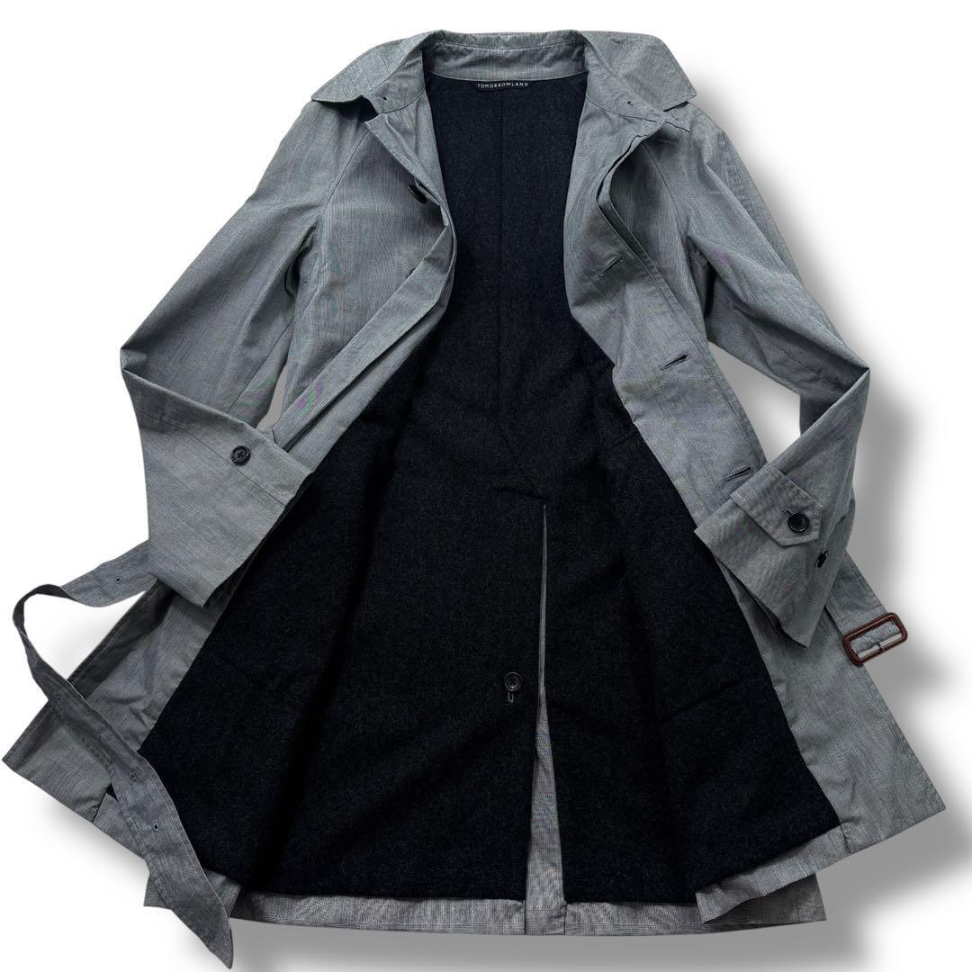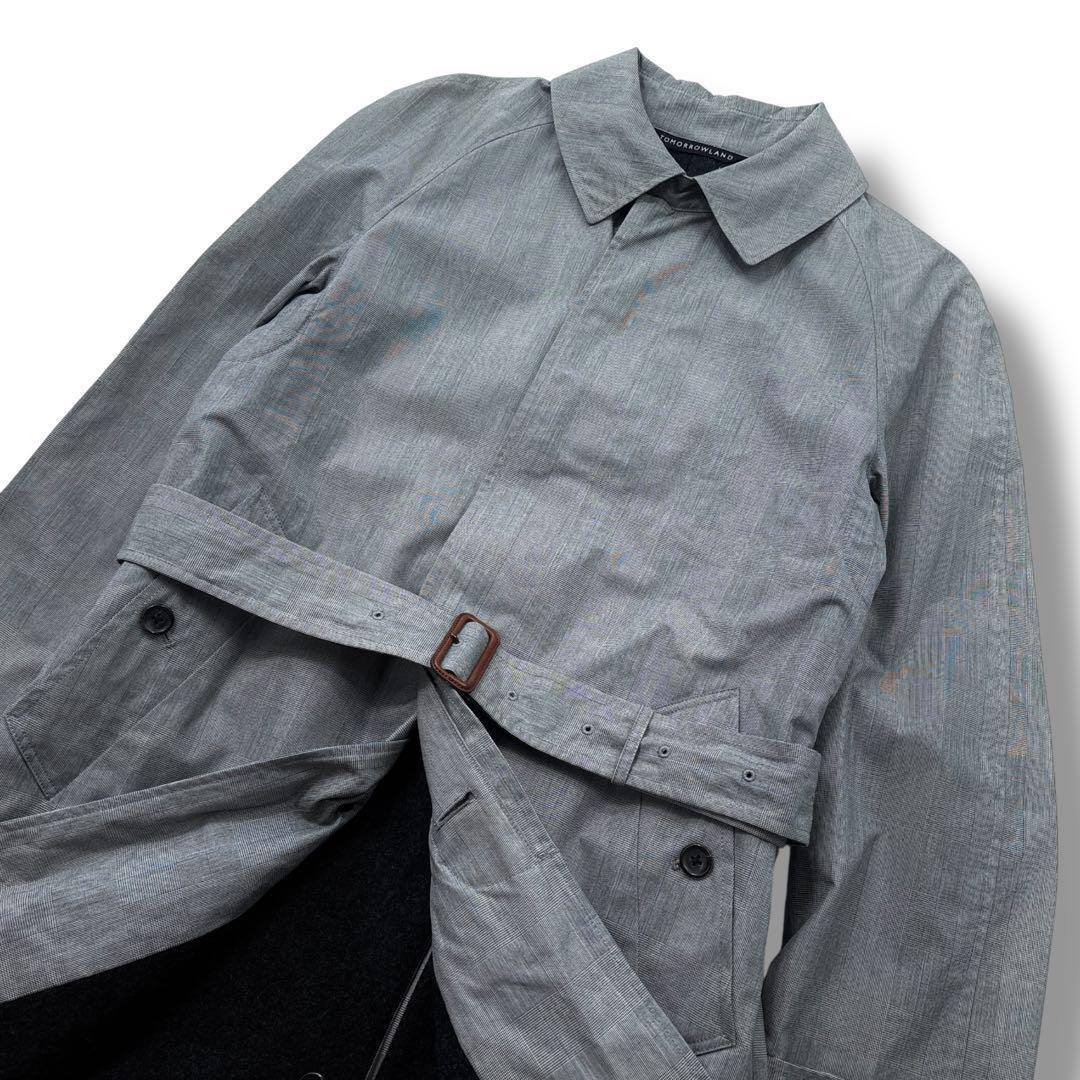 【美品】TOMORROWLAND トゥモローランド グレンチェック ステンカラー コート ウールライナー付き M グレー メンズ ビジネス 通勤通学