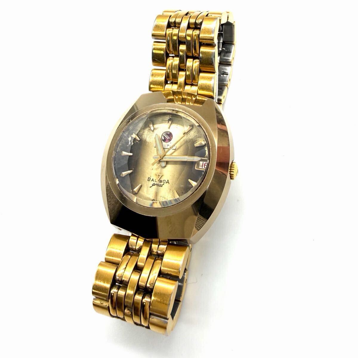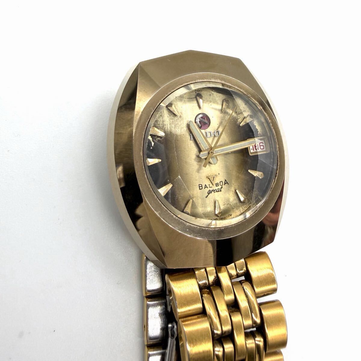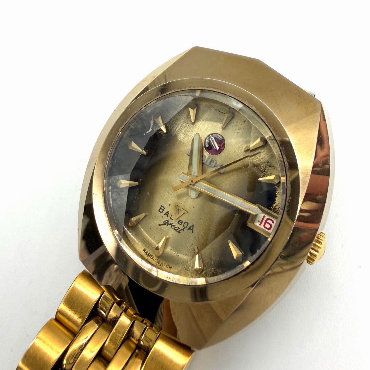 稼働品◆現状渡し◆RADO ラドー BALBOA バルボア 自動巻き カットガラス 腕時計 メンズ時計 ゴールド ジャンク