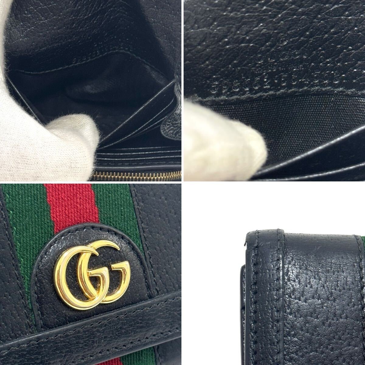 グッチの象徴であるシェリーラインとゴールドに輝くGGロゴ金具がアクセントとなった高級感あるデザインのコンパクトウォレットです♪ コンパクトでありながら小銭やお札、カード、レシートなども収納することができます! |
