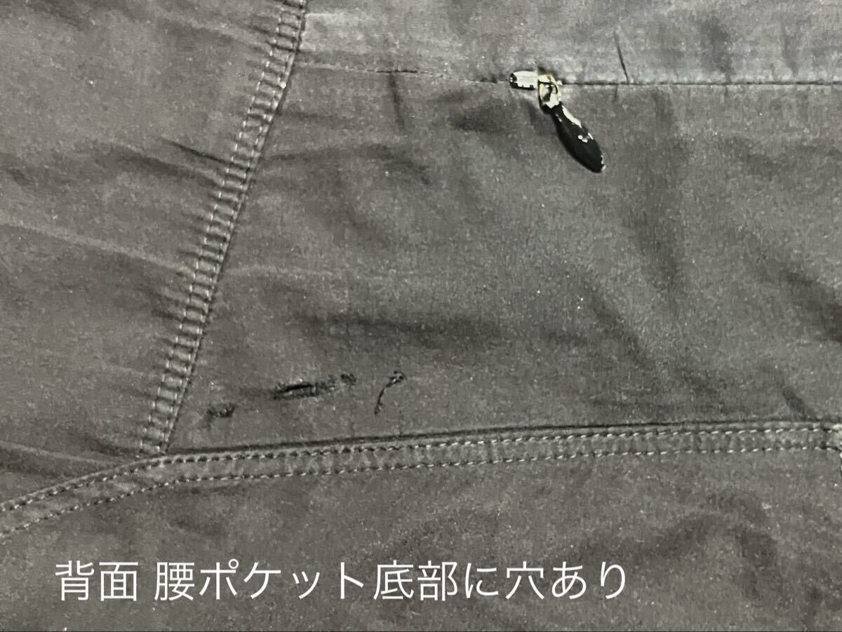背面腰のバックポケットの底付近に2〜3箇所の穴があります。