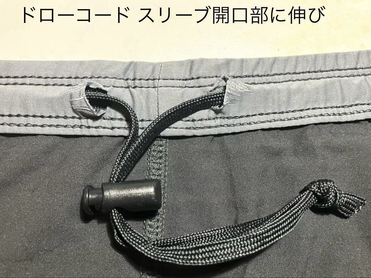 ウエストはゴム入りで伸縮性があり、ドローコード付きで絞れます。