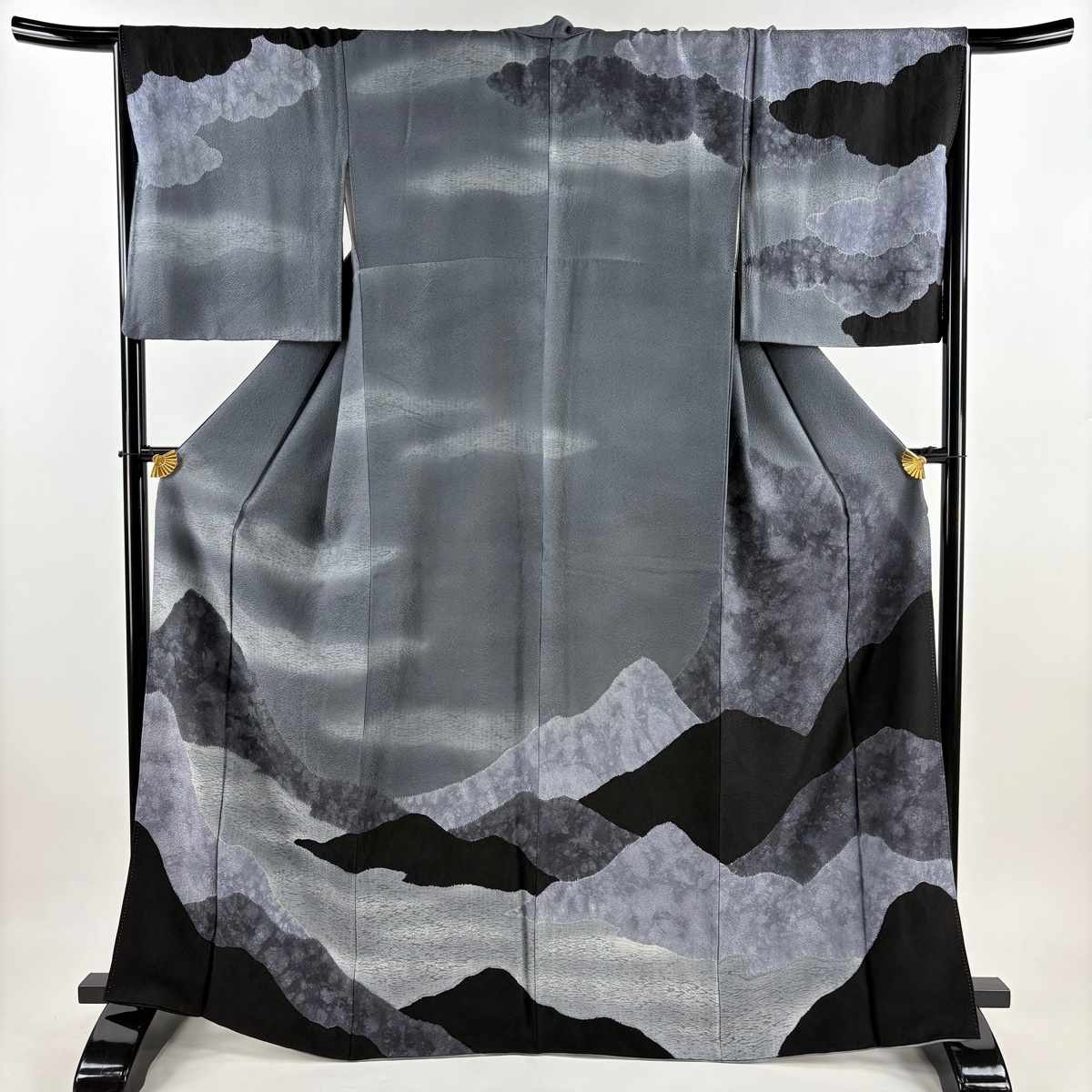 | 訪問着 秀品 霞 幾何学 ぼかし 絞り 青灰色 袷 身丈166 裄丈68 L 正絹 【中古】 |