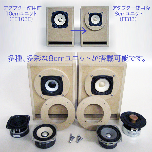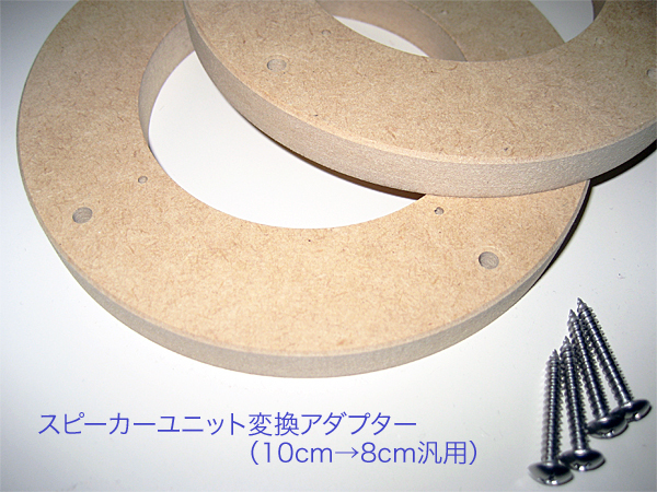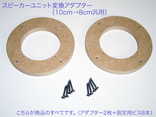 出品する品物はアダプター(2枚1組)および付属ビスのみです。 写真に写っているスピーカーユニットやエンクロージャーは参考のためのもので商品には含まれませんのでご注意下さい。 | ||