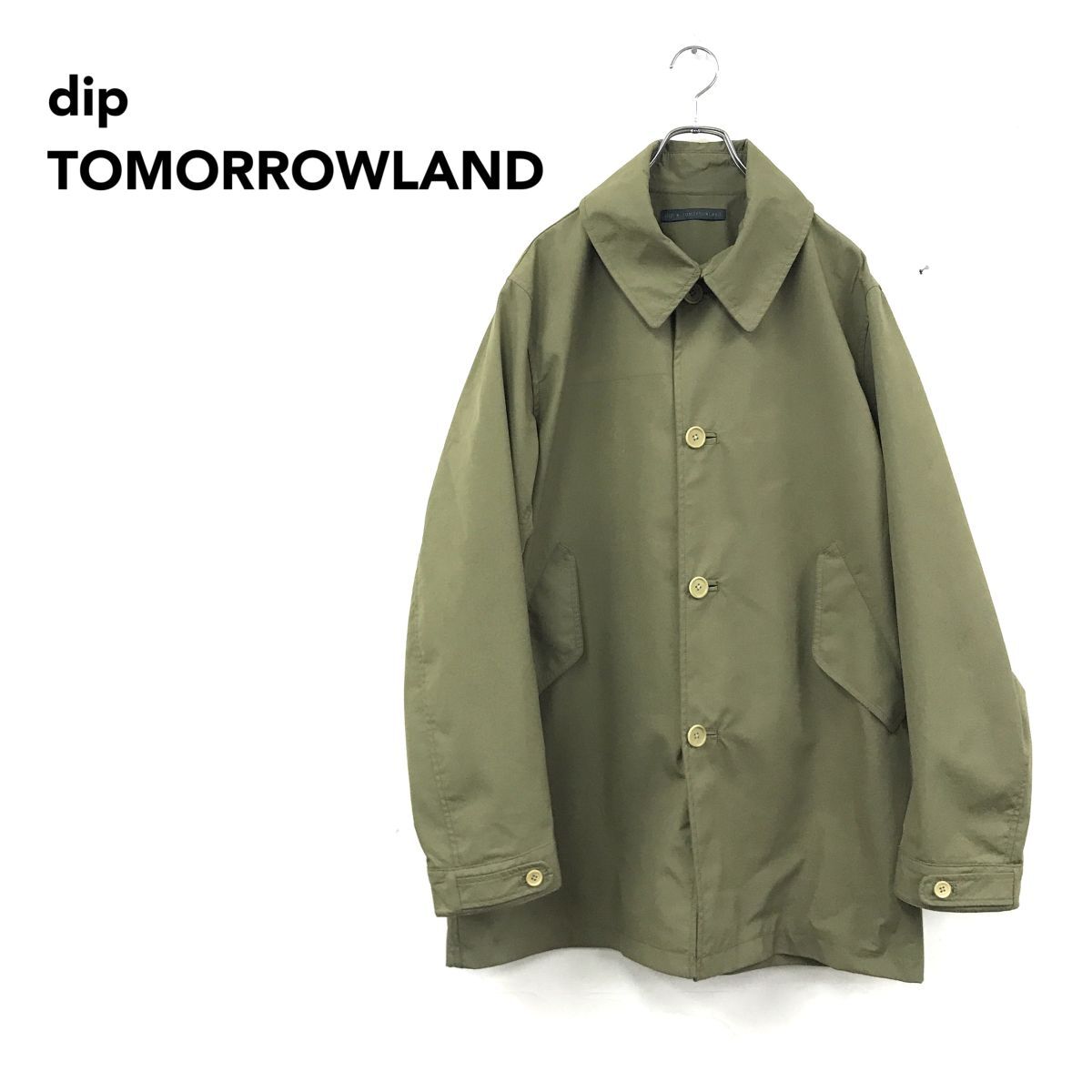 2O1328-G◆ dip tomorrowland トゥモローランド ミドルナイロンコート バックスリット ビッグカラー 無地 スナップ ◆ sizeL カーキ 綿