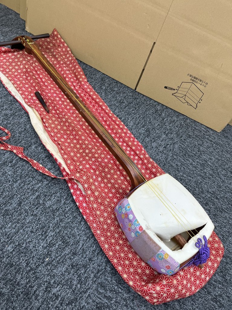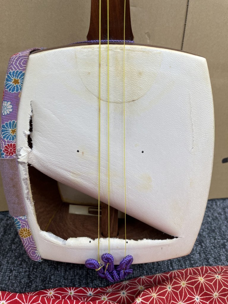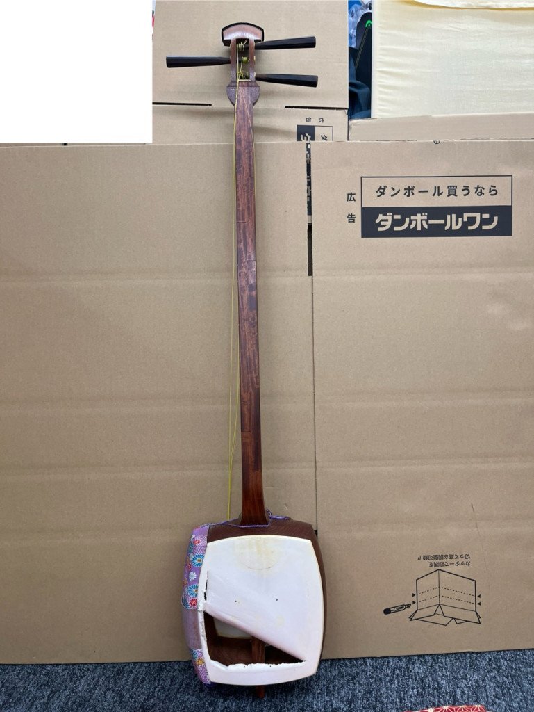 ◆ 【ジャンク品/破損あり】三味線 メーカー 詳細不明 弦楽器 和楽器 民謡 伝統楽器 伝統 現状品 ジャンク OG199425