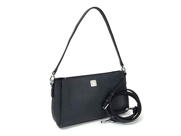 1円 ■美品■ MCM エムシーエム レザー 2WAY クロスボディ ワンハンドル ハンドバッグ ショルダー 斜め掛け 肩掛け ブラック系 FV0460