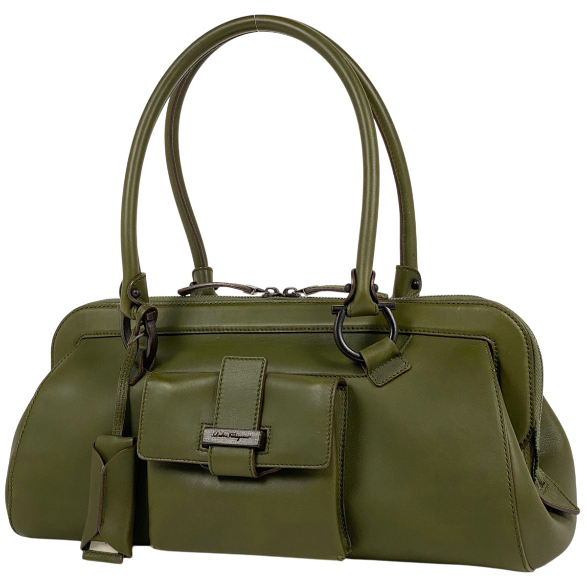 サルヴァトーレフェラガモ Salvatore Ferragamo ガンチーニ ハンドバッグ ショルダーバッグ トートバッグ レザー グリーン レディース 【中古】 |