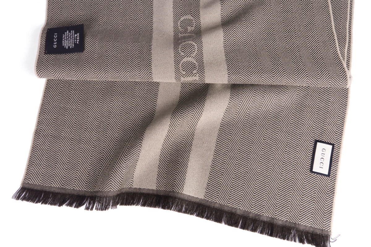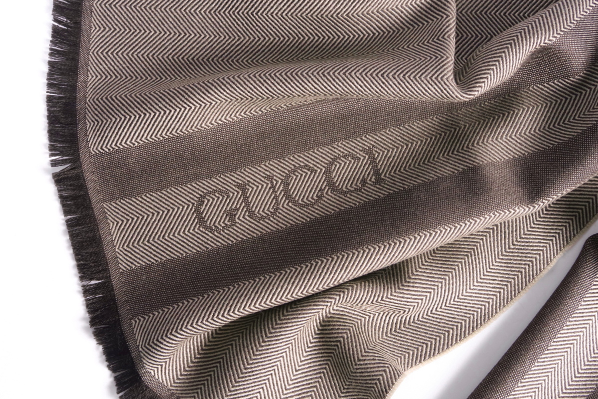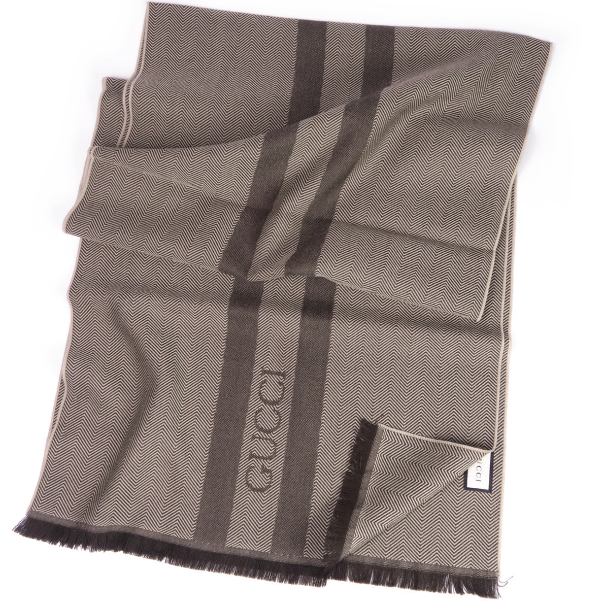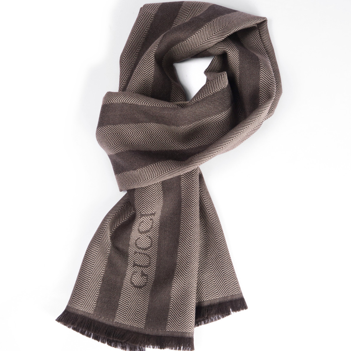 価格6,5万新品本物グッチGUCCI【ジャガードヘリンボーン織りのドレープ感◎大人の格上げ】ウールマフラー/ストール/メンズ/ビジネス/薄茶