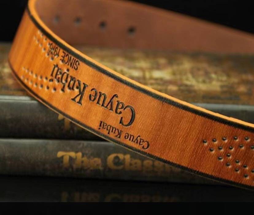 英文字が印字された、雰囲気漂うビンテージテイストのメンズベルト