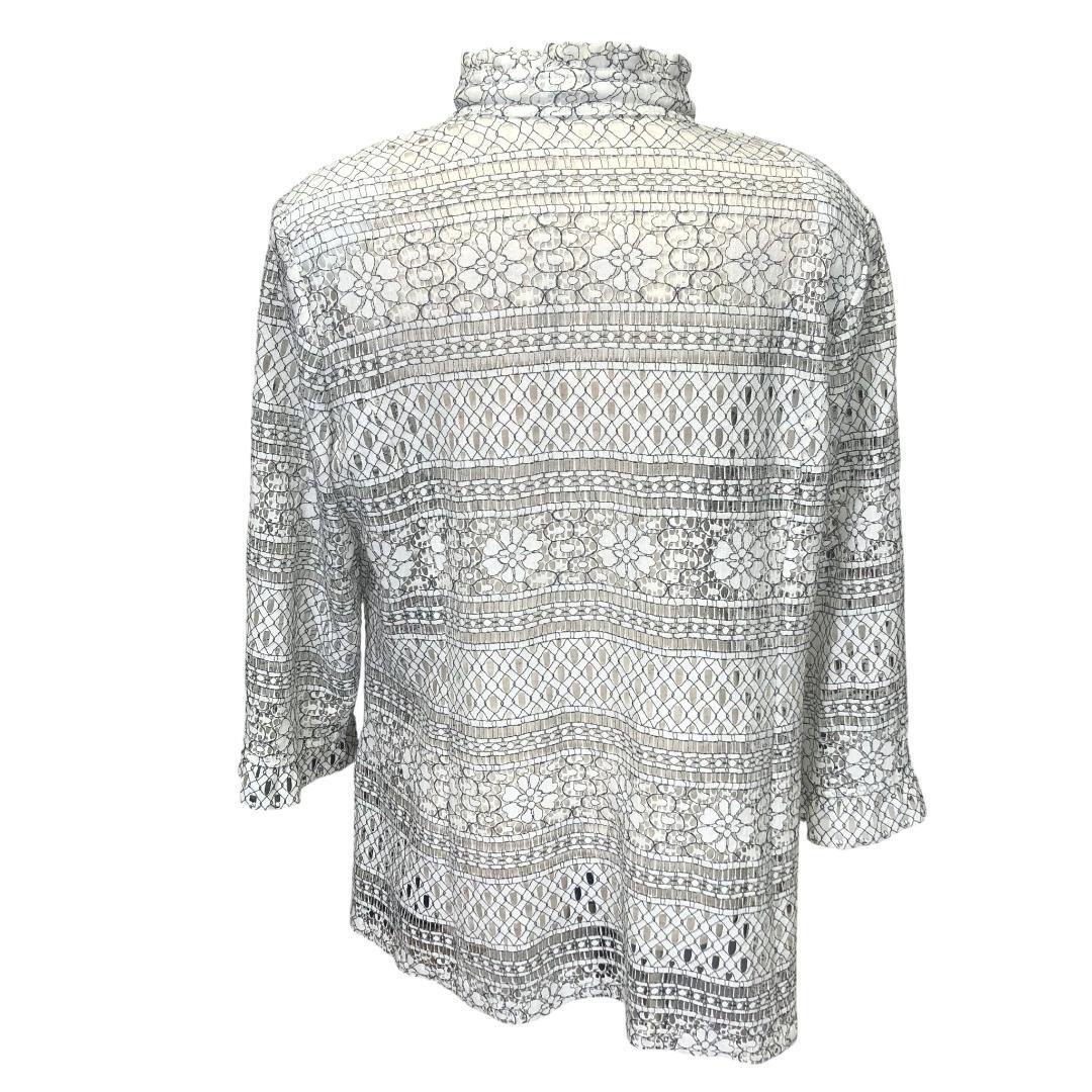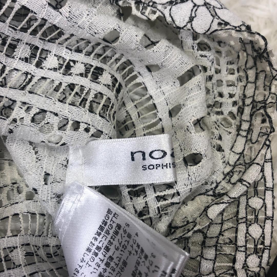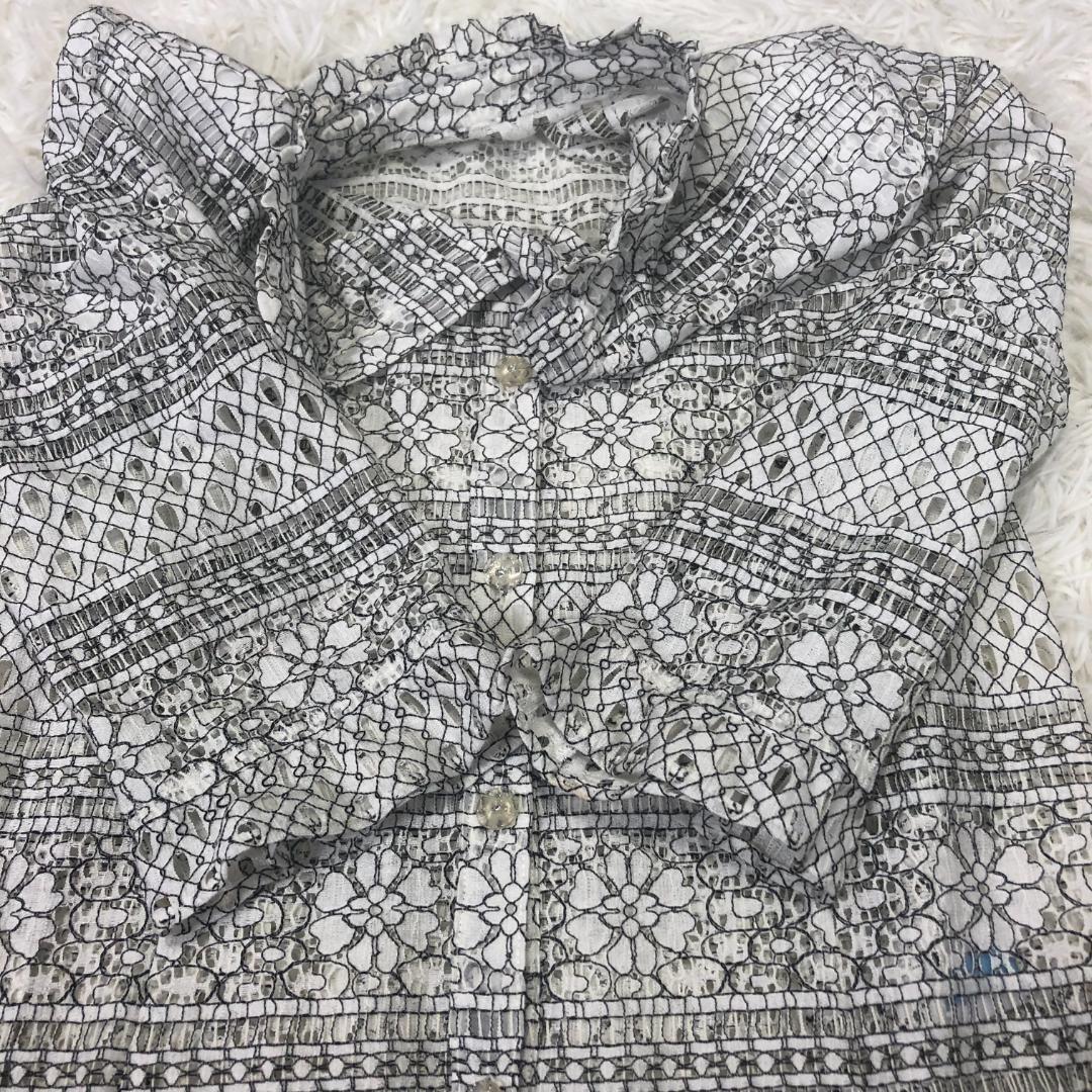 【美品】ノアジェ noa-ge レース編み花柄 フリルネック 7分袖ブラウス L