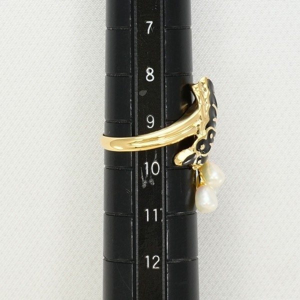 | K18YG エナメル リング 指輪 9.5号 パール(真珠) 総重量約4.6g 中古 美品 送料無料 | |