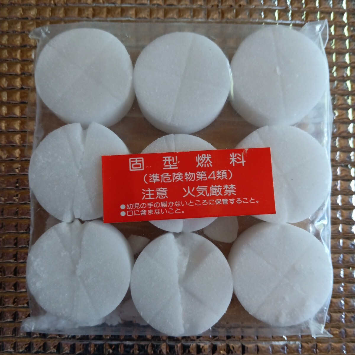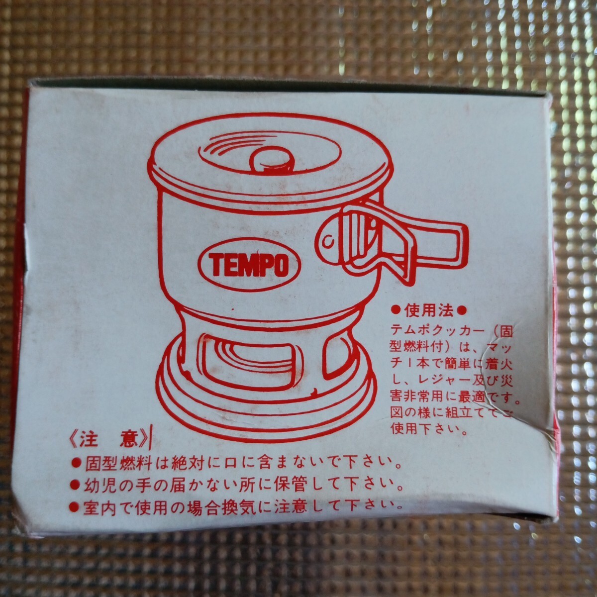 中身には問題ございませんが、箱にダメージあり。固形燃料型崩れあり。