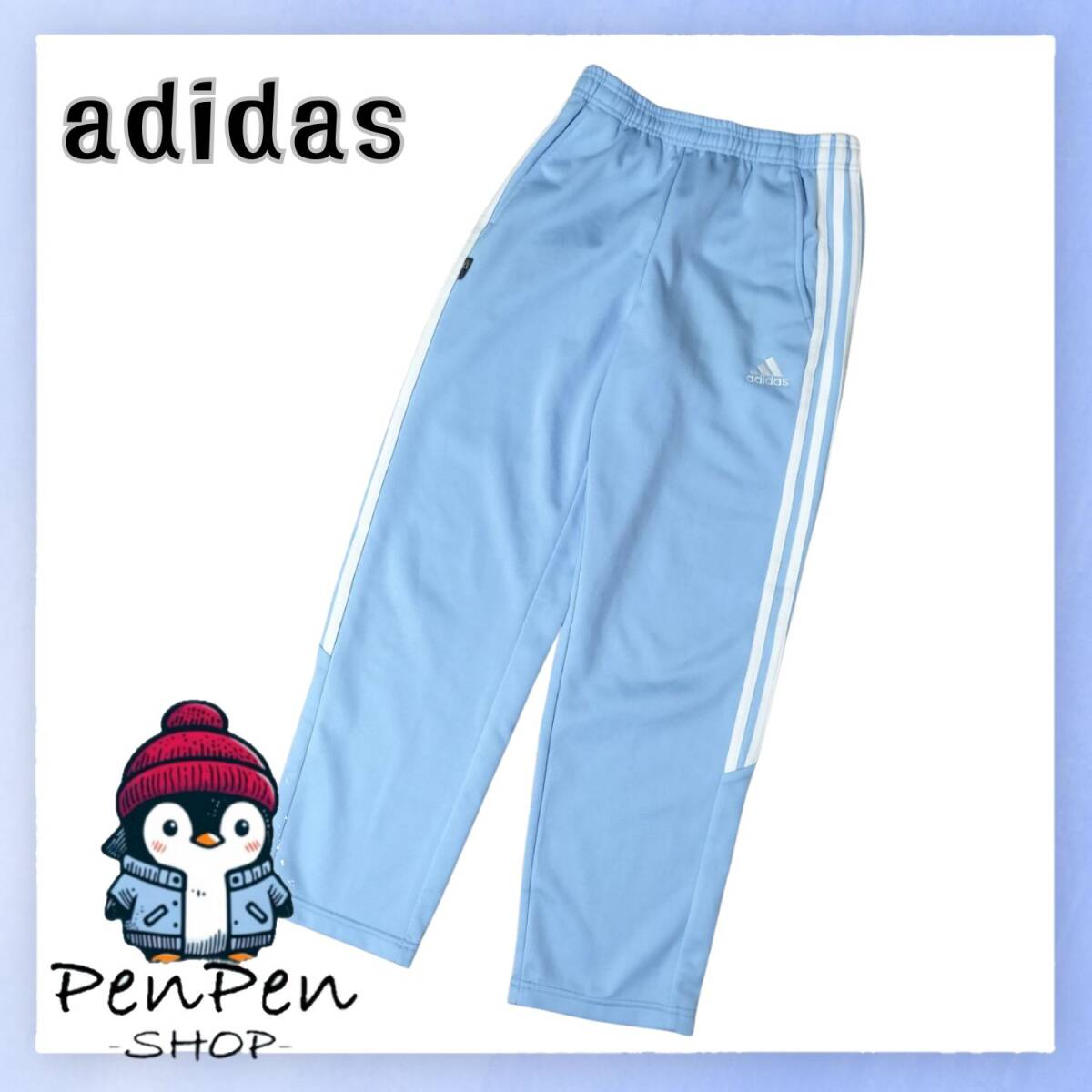 adidas アディダス ジュニア ジャージパンツ Clima365 トラックパンツ スリーストライプス 水色×ホワイト 150 ポリエステル ウエストゴム