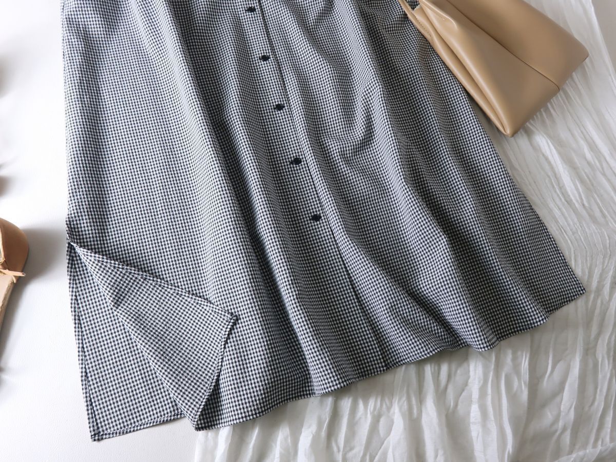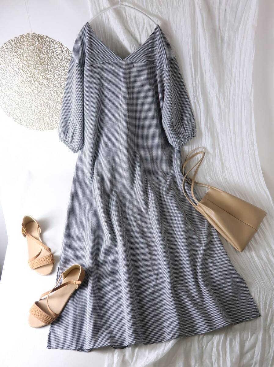 大人の女性にも着て頂きやすい、細やかなギンガムチェック柄が魅力のワンピース。ふんわりとした袖のシルエットや、両Vネック仕様はさりげなく女性らしさを与えてくれる。しっかりと長さがあるから1枚着しやすく、ボタンを開ければ軽い羽織にも早変わり。レイヤードを楽しみたいときはパンツを合わせても◎様々なスタイリングに挑戦しやすいおすすめアイテムです♪