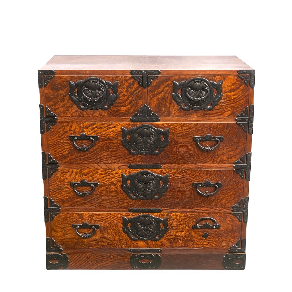 • レトロ調和箪笥 表面材ケヤキ/本漆塗り 幅90cm 高さ90cm 奥行45cm