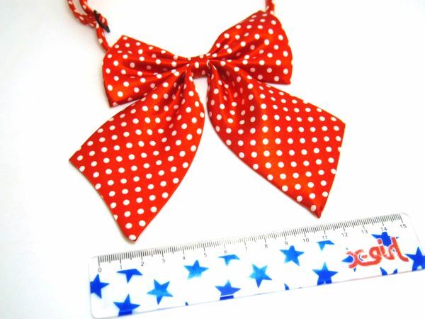 | リボンタイ 学生風 自宅保管の未使用品です。 カラー:写真の通り サイズ:結びサイズ約14cm X 16cm ベルトサイズ:フリー パッケージはありません。 3枚目の写真は仕様イメージです。カラーや細部が異なる場合がございます。 保管時や輸送費に折り皺等が付く場合がありますので、アイロン前提でご入札ください。 |