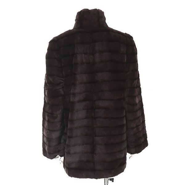 A5773/美品 秋冬 毛皮 シェアード ミンク ファー ボーダー リバーシブル ハーフ 膝丈 セミロング ショールカラー コート M程 茶/レディース
