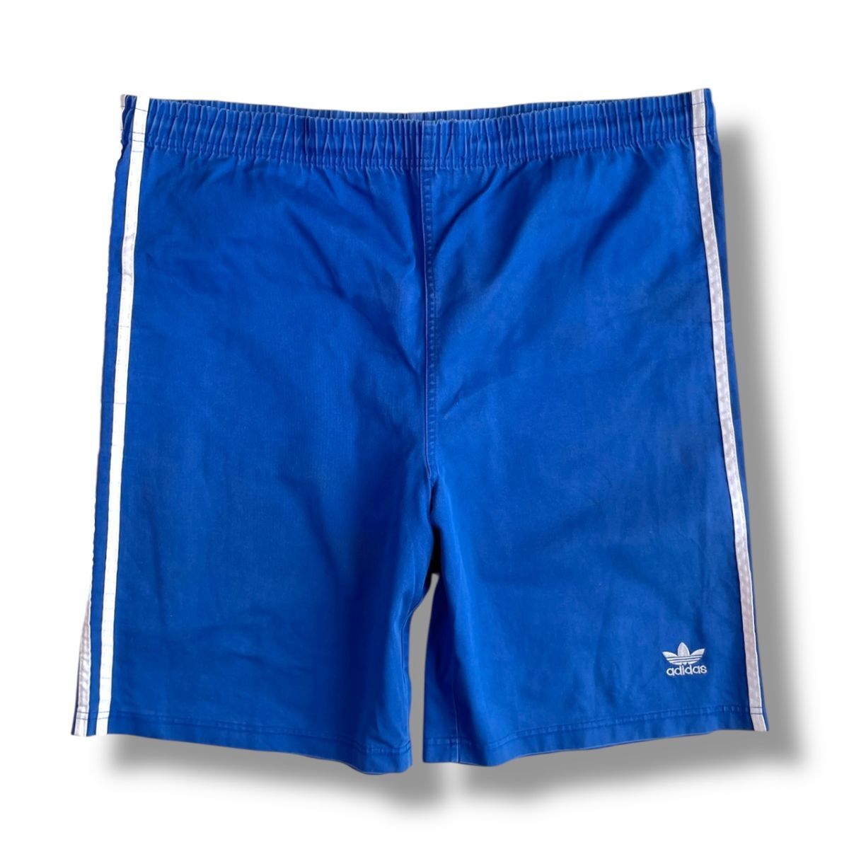 希少★80's adidas アディダス 万国旗タグ トレフォイル刺繍 メンズ ショートパンツ 青 L ショーツ 短パン スポーツウェア ヴィンテージ