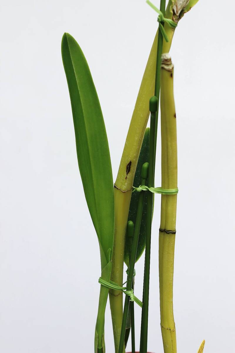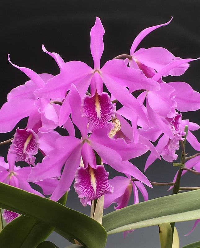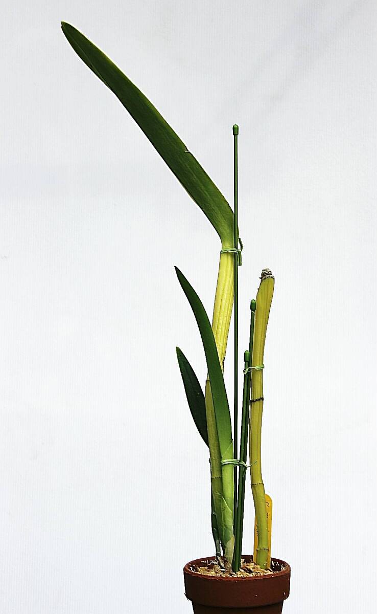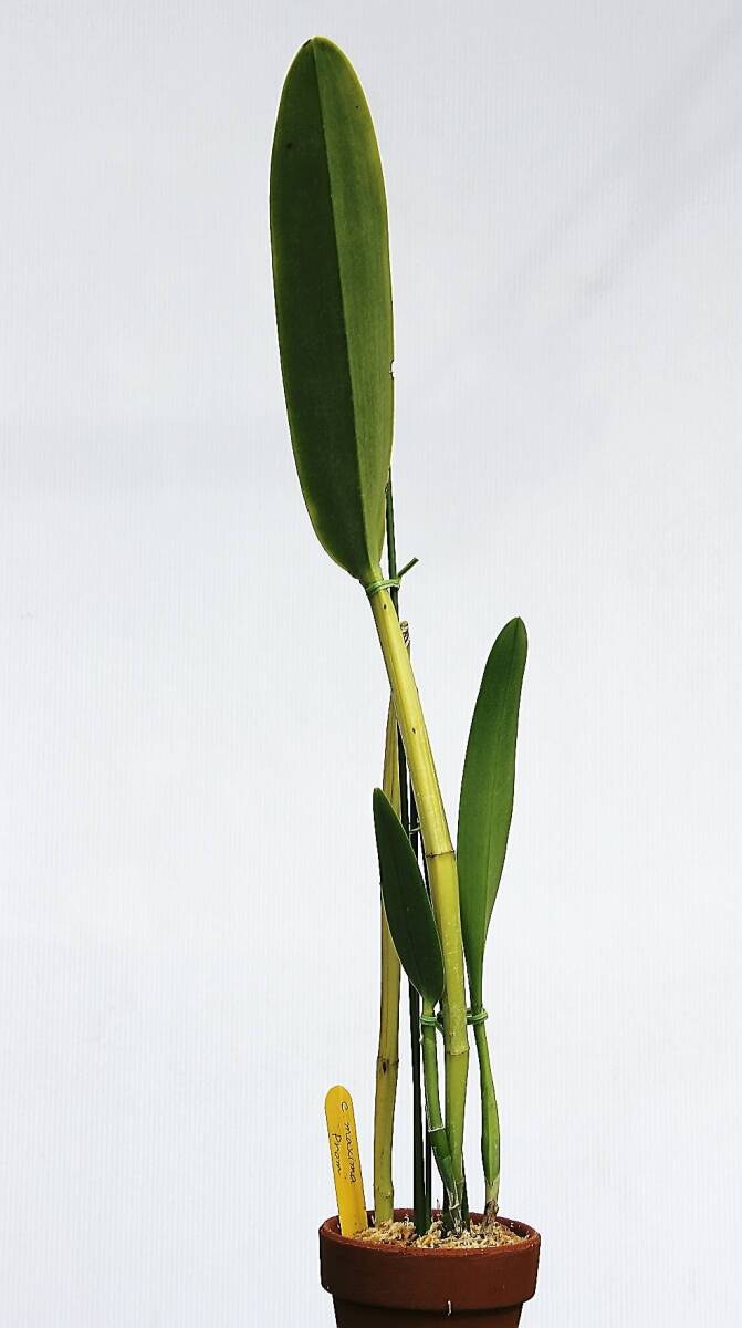 C. maxima 'Prom' のオリジナル株です。写真のように、ペタルがフラットに開き、マキシマとしてはとても整った花形の個体です。この写真ではよく分かりませんが、リップの前面だけでなく、筒の下側も濃色のラベンダーが入ります。株も大柄になるので、複数の花茎が開花した時は、非常に迫力があります。関東の有名蘭園が、'Fukue'×'Suwada' から選抜・命名した優秀個体ですが、市場にはほとんど出回っていないと思います。 出品株は、3号鉢植えのバック2バルブ(最後尾のバルブは葉なし)から新しいバルブが2バルブ(シース付き)完成したところです。一番大きなバルブの大きさは、元から葉先まで約53㎝、トップバルブの大きさは約27㎝あります。 スムーズなお取引のために、落札された方は48時間以内に初回の御連絡をお願いいたします。宅配業者からの連絡が必要な場合に備え、できれば電話番号もお知らせください。 発送は、ヤマト宅急便の着払いでさせていただきます。10月13日(月)からの発送になりますので、御了承ください。 |