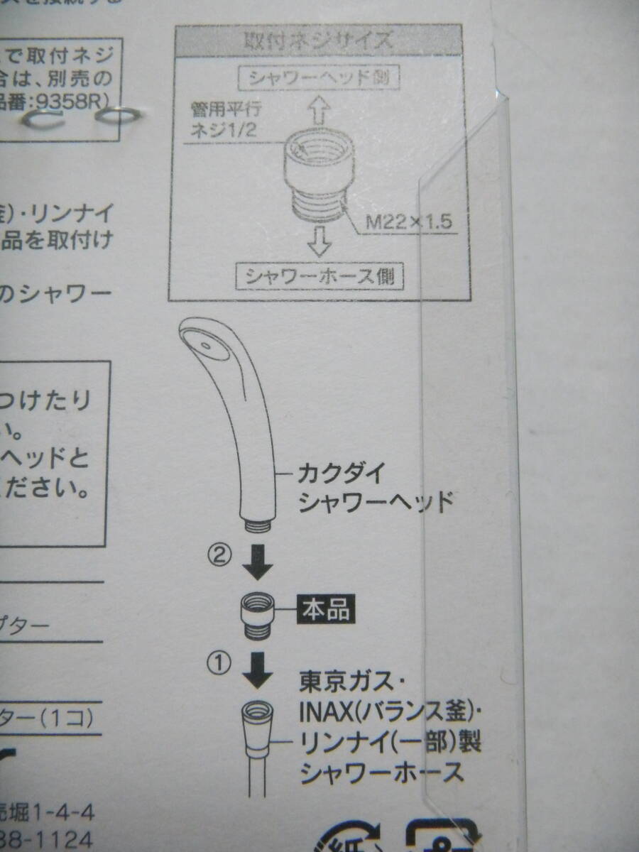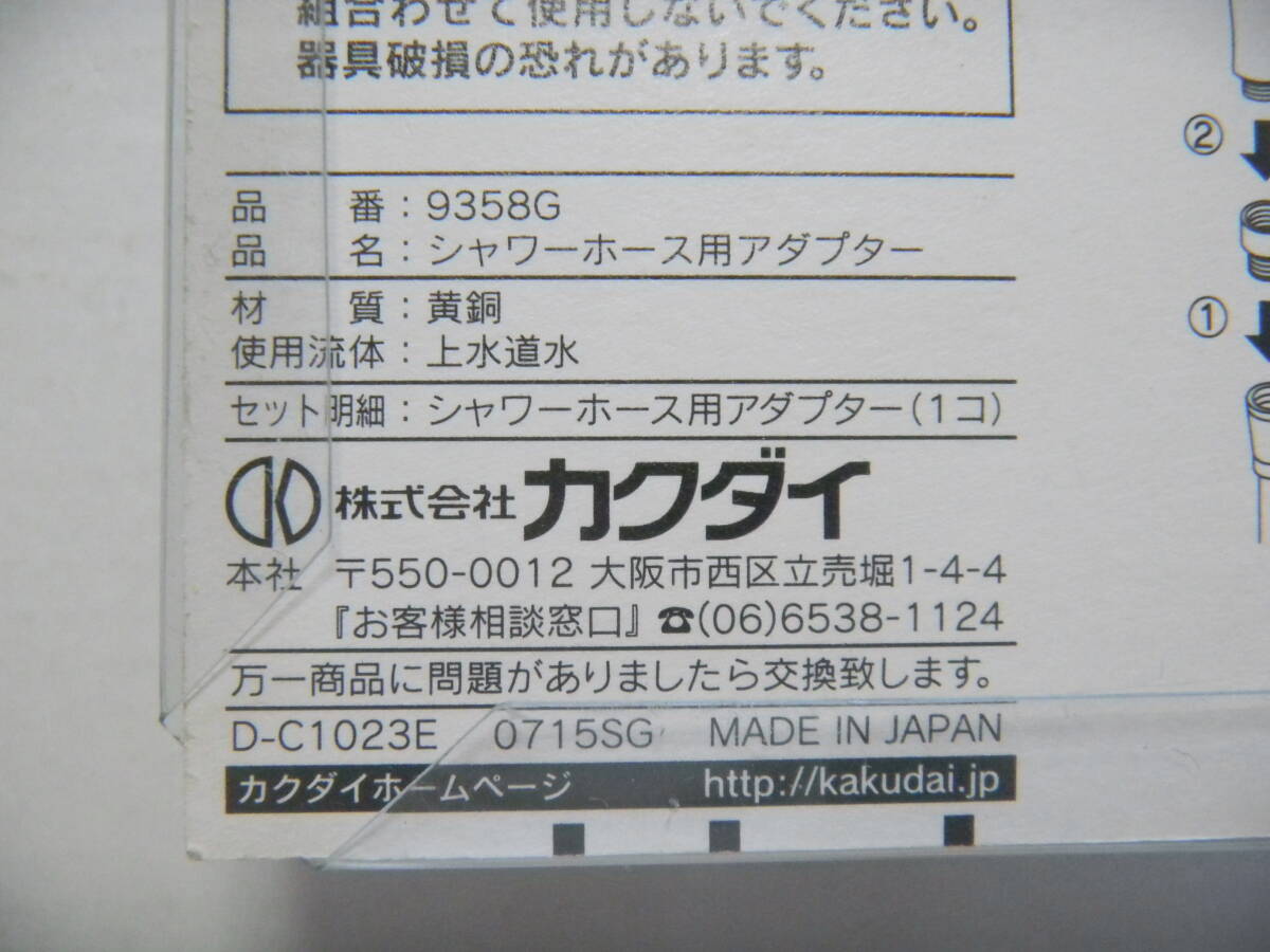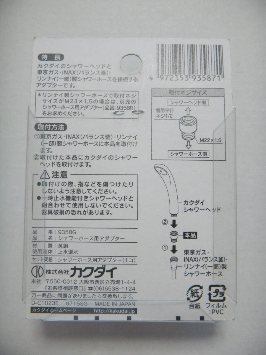KAKUDAI シャワーホース用アダプター 未使用 9358G (M22x1.5-1/2) 東京ガス・リンナイ・INAXなどに