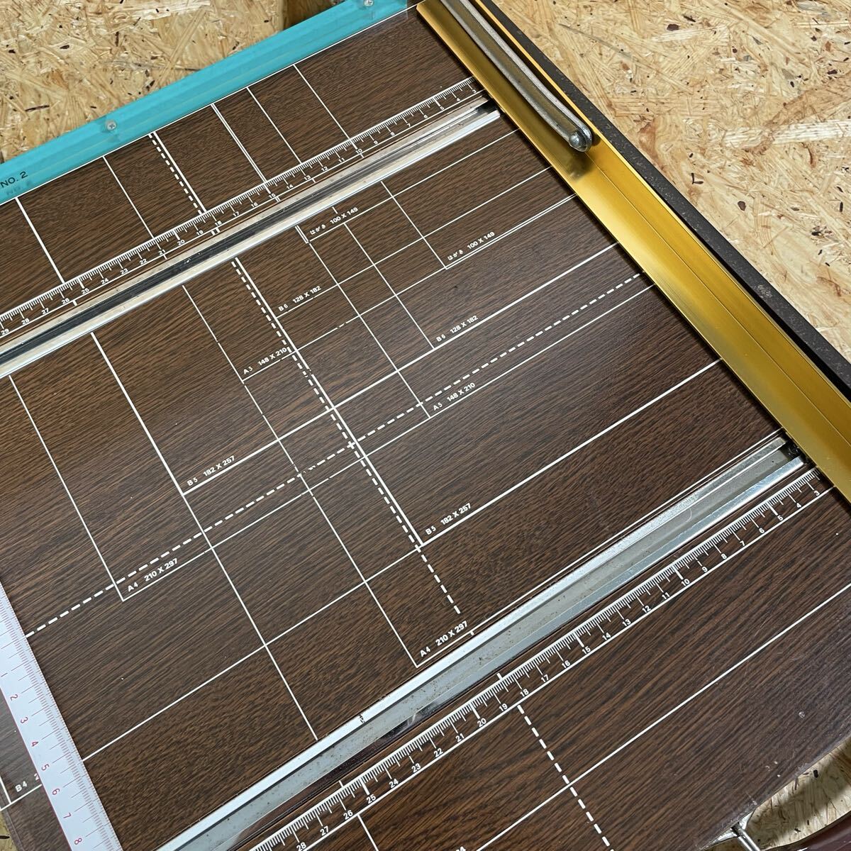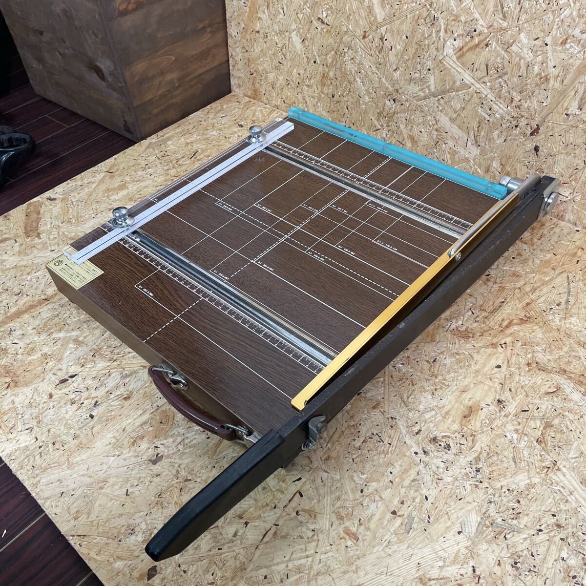 レトロでかわいい木目調のペーパーカッターです。