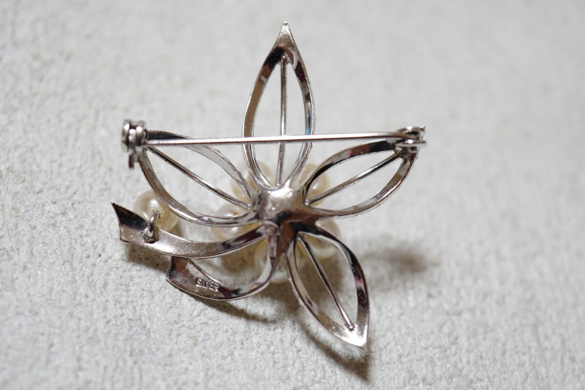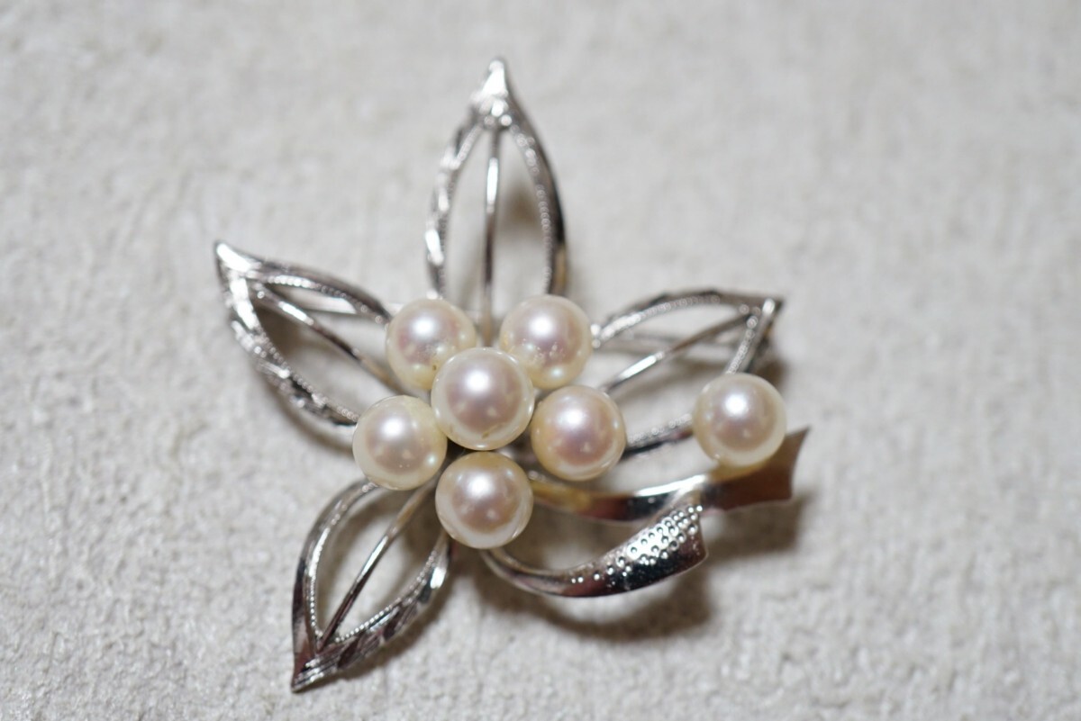 480 アコヤ真珠 本真珠 パール シルバー ブローチ ヴィンテージ アクセサリー SILVER刻印 冠婚葬祭 あこや 装飾品