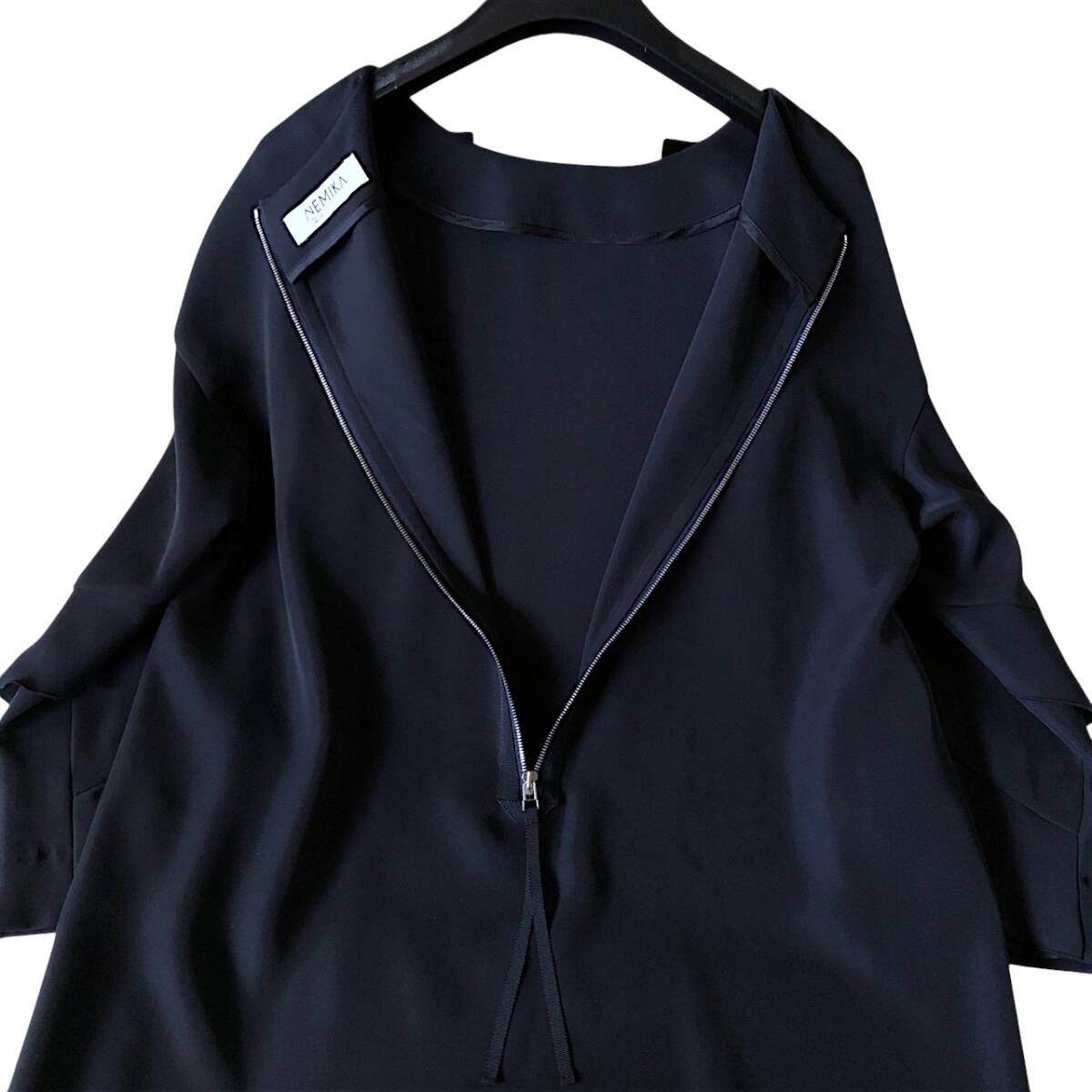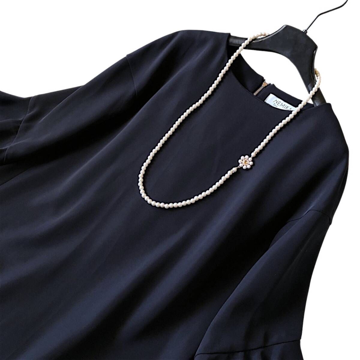 B02◆レリアン Leilian NEMIKA ネミカ 大きいサイズ 11 L XL LL 前後ゆったり プルオーバー ワンピース ストレッチ 可愛い フリル スリーブ