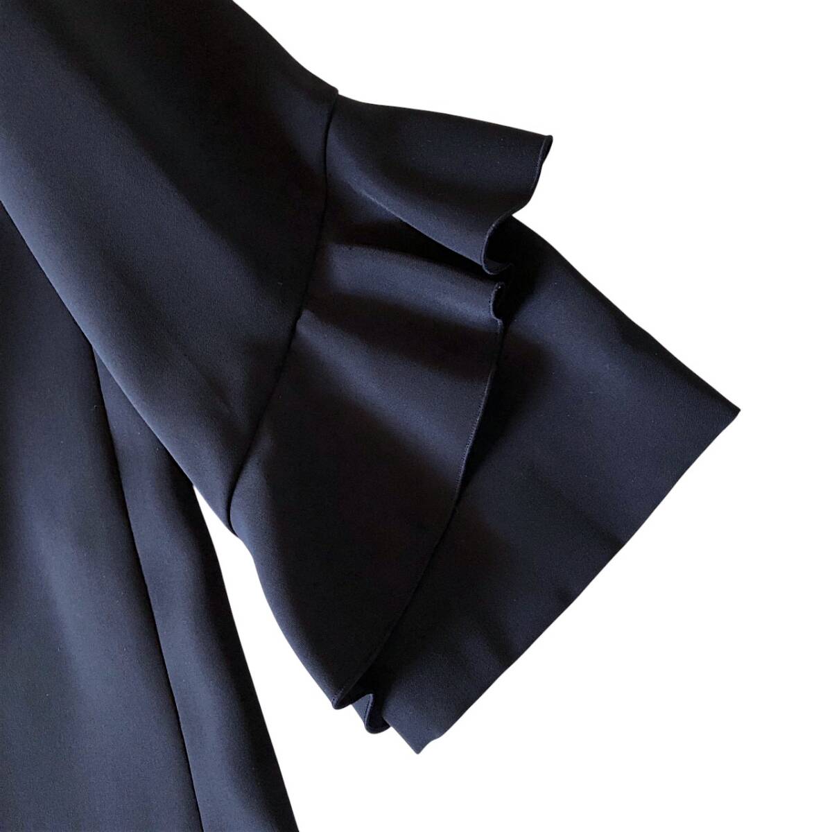 :袖にあしらわれたフリルが、所作までエレガントに見せる美しいワンピース