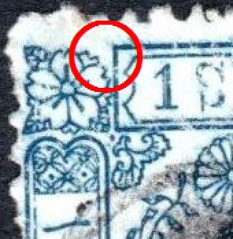 手彫切手 洋桜1銭リ 左上桜葉落ちエラー
