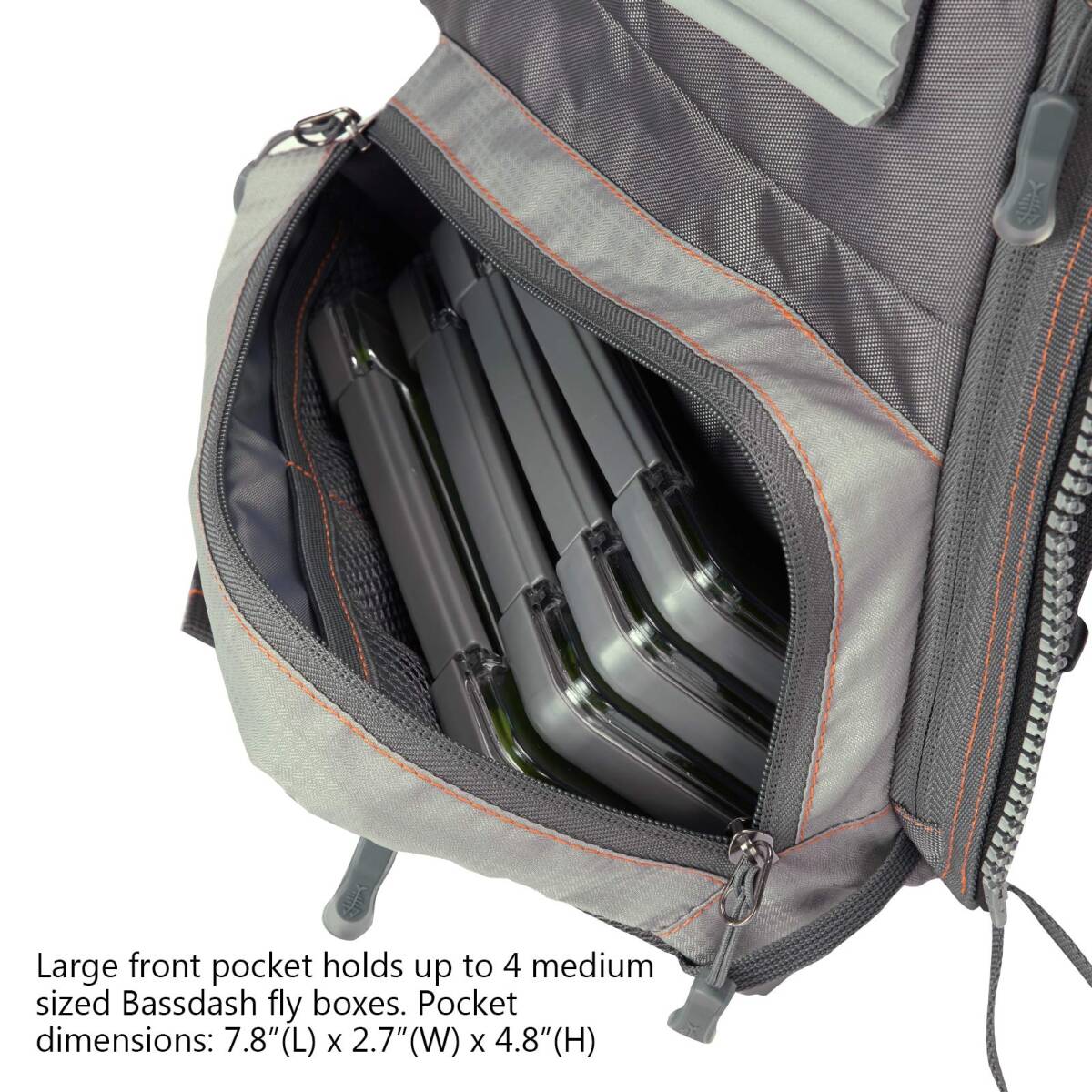大容量:18ポケットデザイン、フロントポケットは渓流釣りに4個BASSDASHフライケースが収納可能。