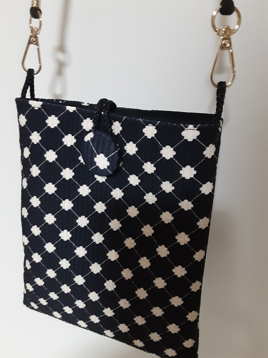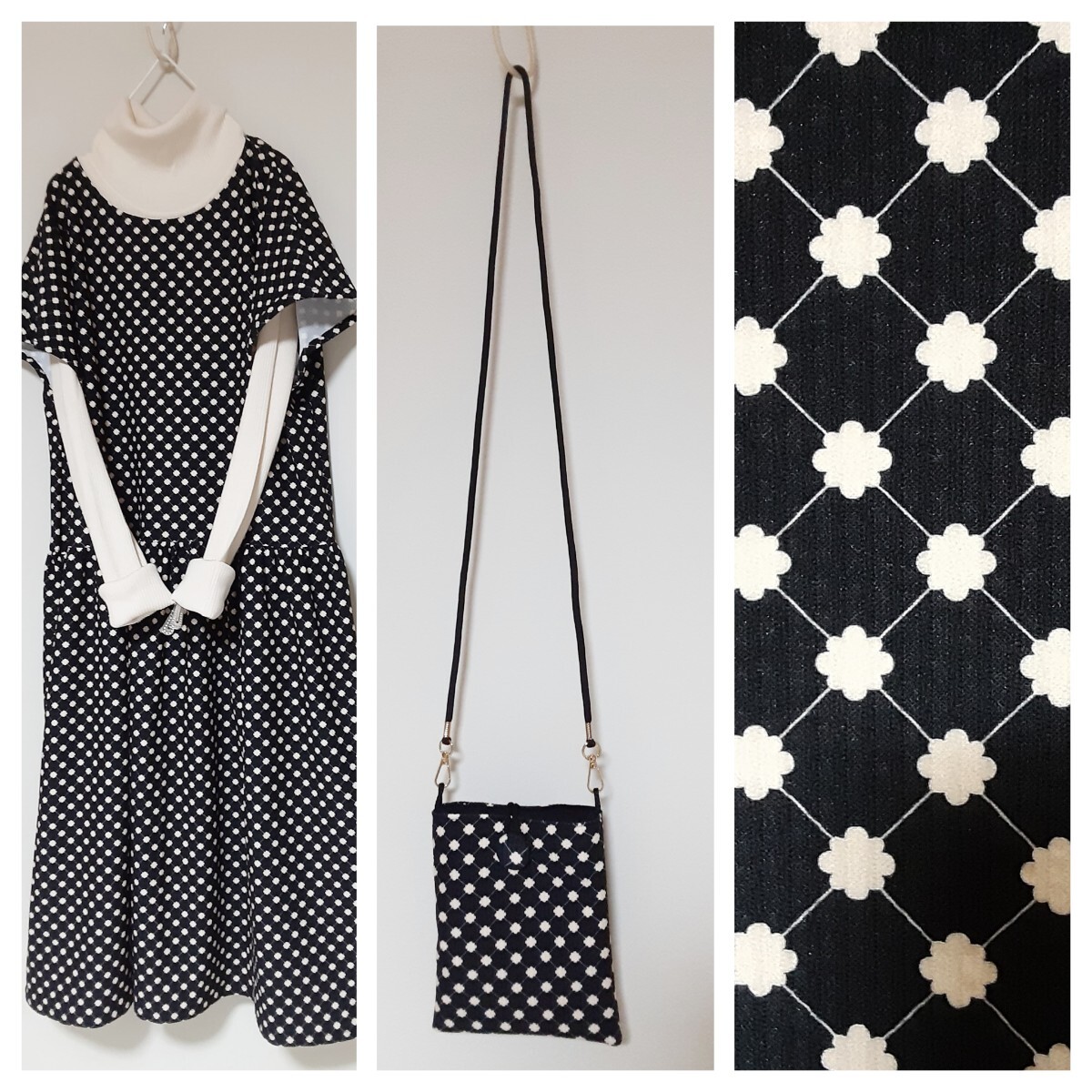 シンプルなローウエストのワンピースと同生地でポシェットをお作りしました。