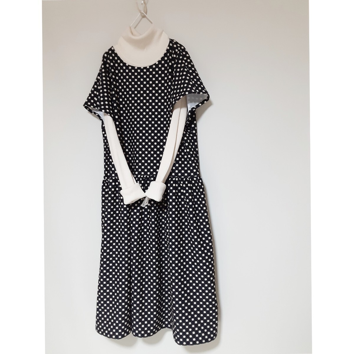 ワンピースは少しローウエストのデザインで、トップは重ね着のしやすいフレンチ袖にしてみました。